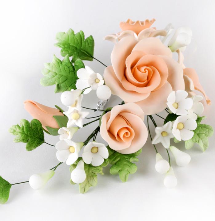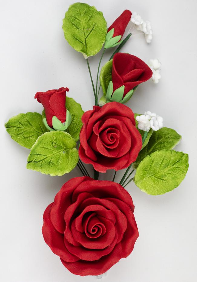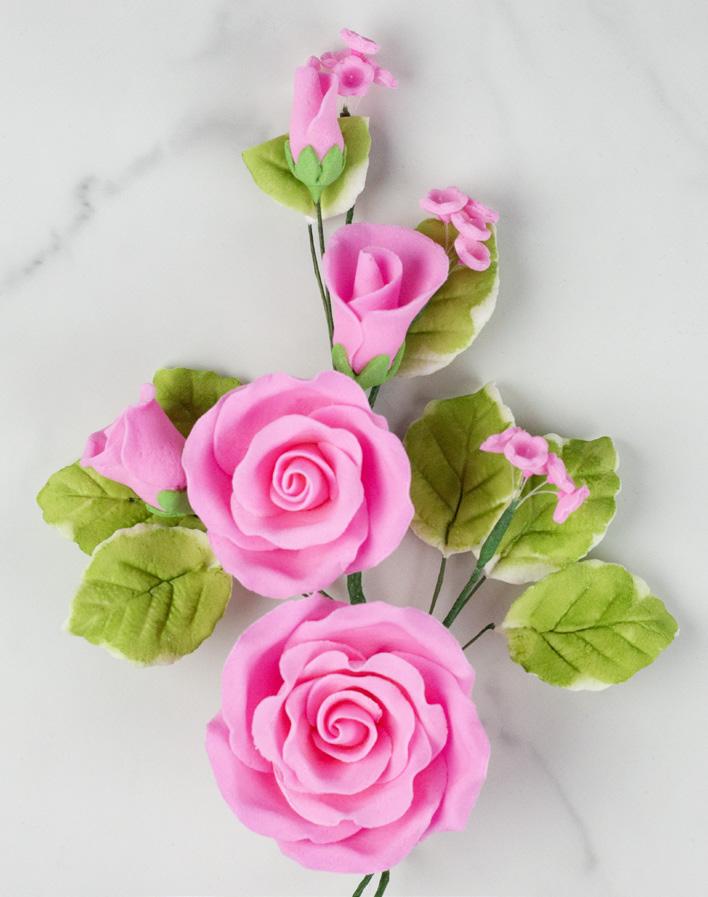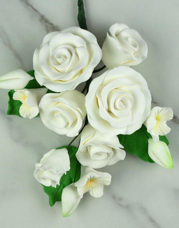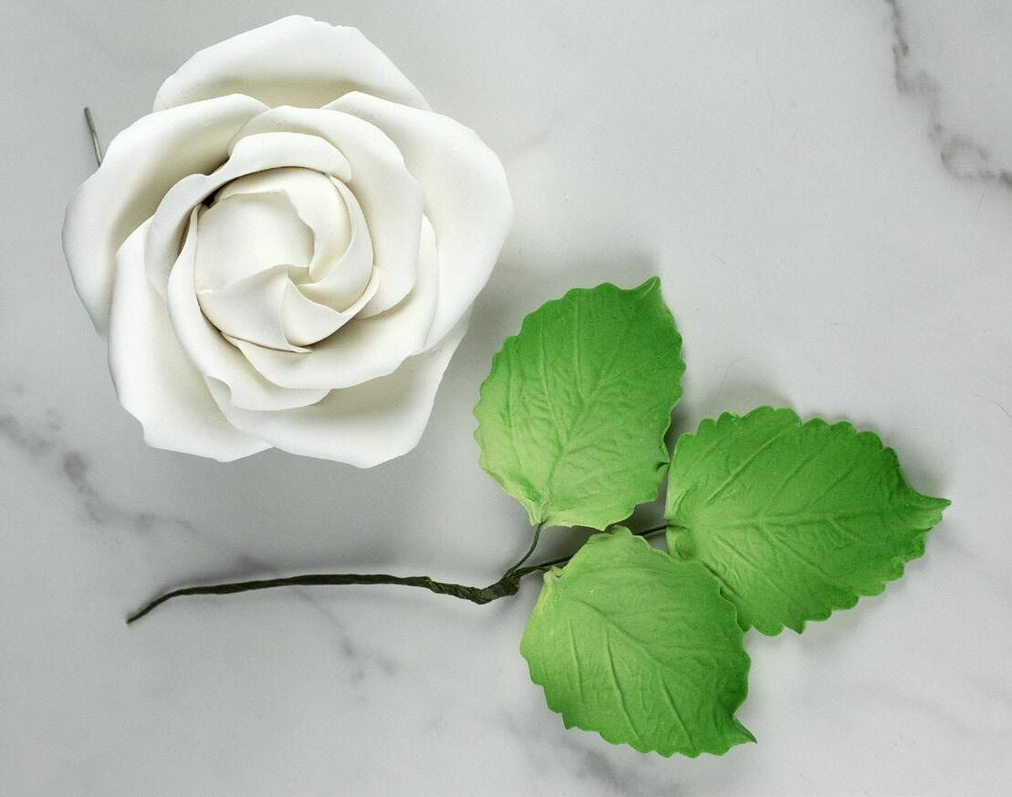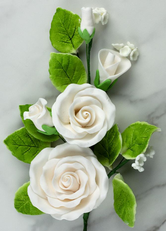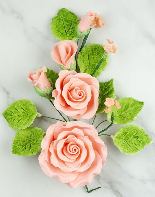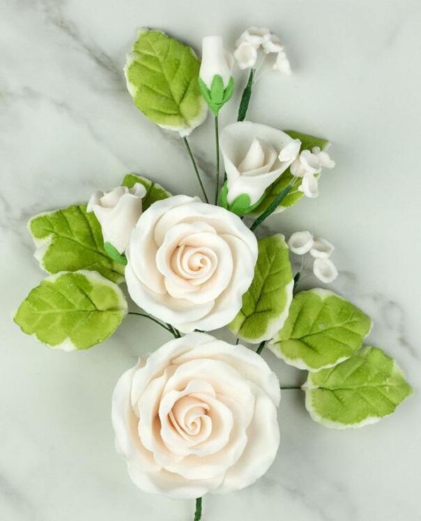 FANCY SMALL GUMPASTE ROSES WITH LEAVES