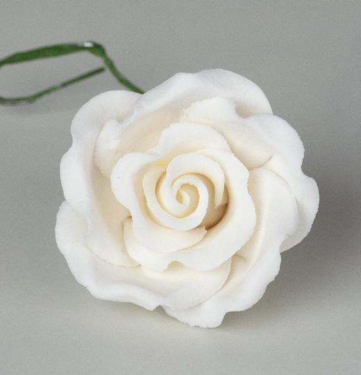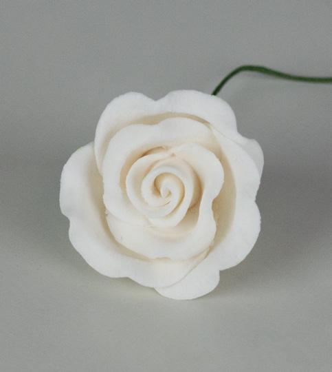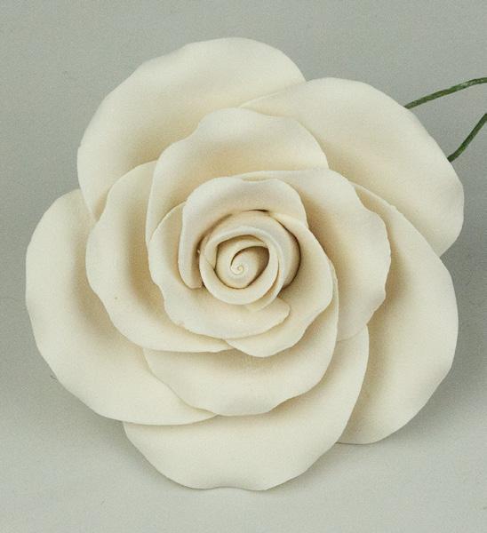 Fancy Gum Paste Rose Large-White (No Wire) 20/Box 2”