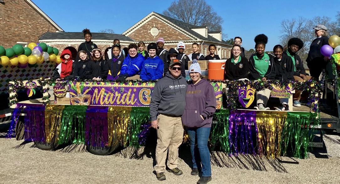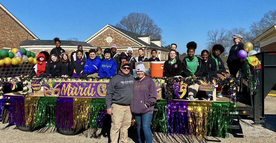 Community support also made participation in Talladega’s Mardi Gras Parade possible. ALA parents Kendrick and Amanda Gallahar provided and helped construct the float, while staff and volunteers joined together to decorate and support students as they tossed beads and MoonPies fresh from our friends at the Chattanooga Bakery along the parade route, creating lasting memories for everyone involved.