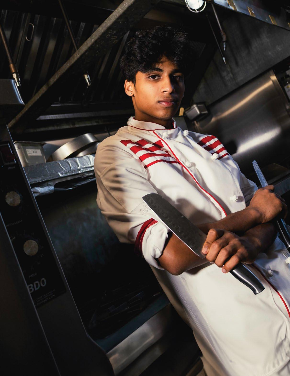 on Fox. On the show, chefs are paired with professional chefs Gordon Ramsey, Nyesha Arrington and Richard Blais. The competition that tests chefs in three distinct kitchen environments—one state-ofthe-art, one standard, and one that isn’t too different than what you’d find in a chapter house. Kamulkar’s season was focused on popular chefs from social media, home cooks, and professional chefs. In many ways, Kamulkar fits into all three categories although at this point in his career he was placed in the home cook category.