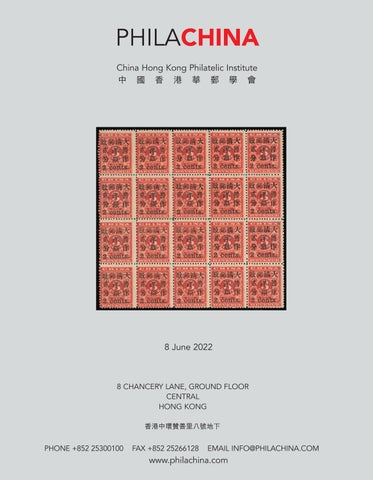 Since its inception in 2001, Phila China Limited has become a pioneer in China philately, its steadfastness and integrity have been recognized by international collectors world-wide. Holding five public auctions annually at the company's own auction galleries located on 8 Chancery Lane, Ground Floor in Central Hong Kong.