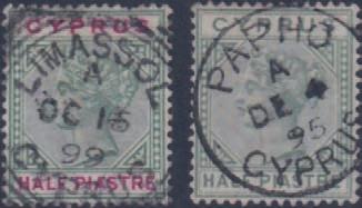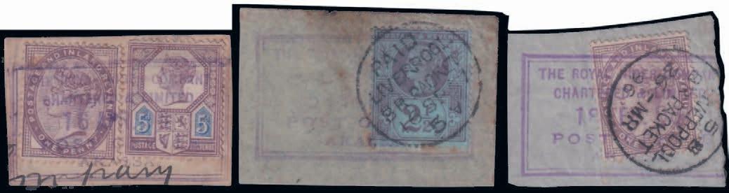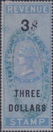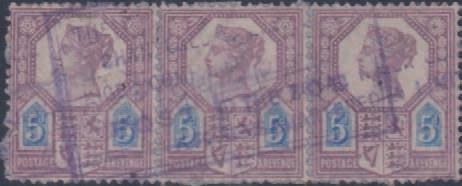 2631 1884-96 Stamp Duty 1s deep blue on blue, 1s chalky-blue on lemon (x2 shades), 3s maroon on blue (x2 shades), wmk V over Crown sideways, perf.12½, SG.257, 259, used (5). £90/£110
