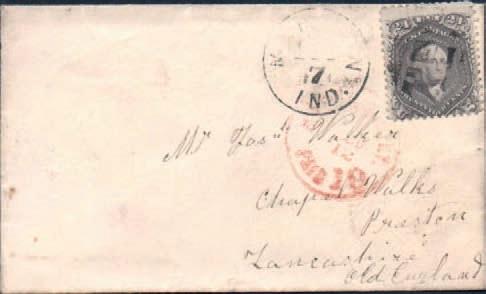 2573 * 1867 24c greyish lilac, Washington, Scott 78a, single franking used on small env to Preston, England with arrival mark on reverse, good to fine, Scott cat $425 used on cover. Photo £75/£90