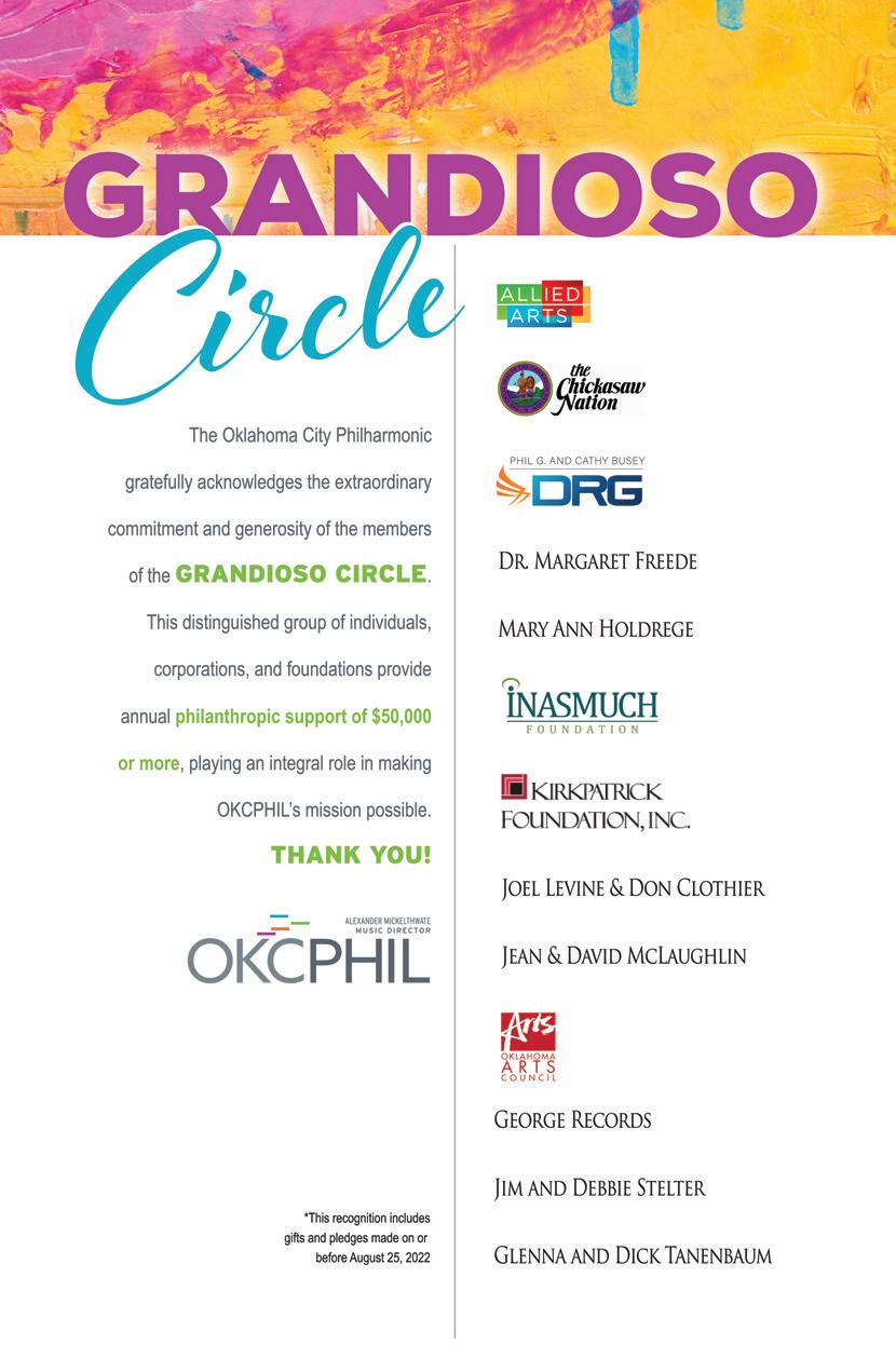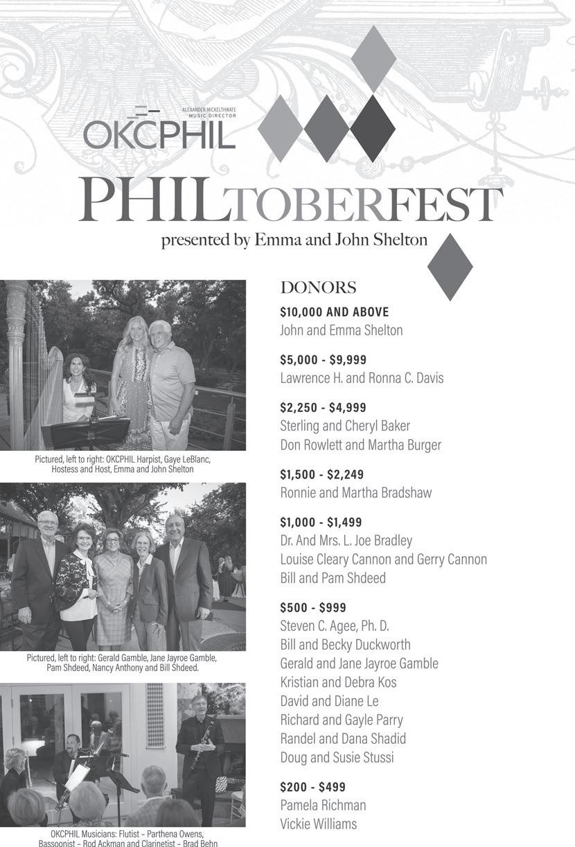 The Fortune Club John and Susan Frank Mrs. Jane B. Harlow Sandra Cleary, Patty Lewis, and Kemi Harris Kim and Michael Joseph The Kerr Foundation, Inc. Oklahoma Youth Orchestras Catherine D Sconzo-Blackburn Doug and Susie Stussi Ralph and Barbara Thompson