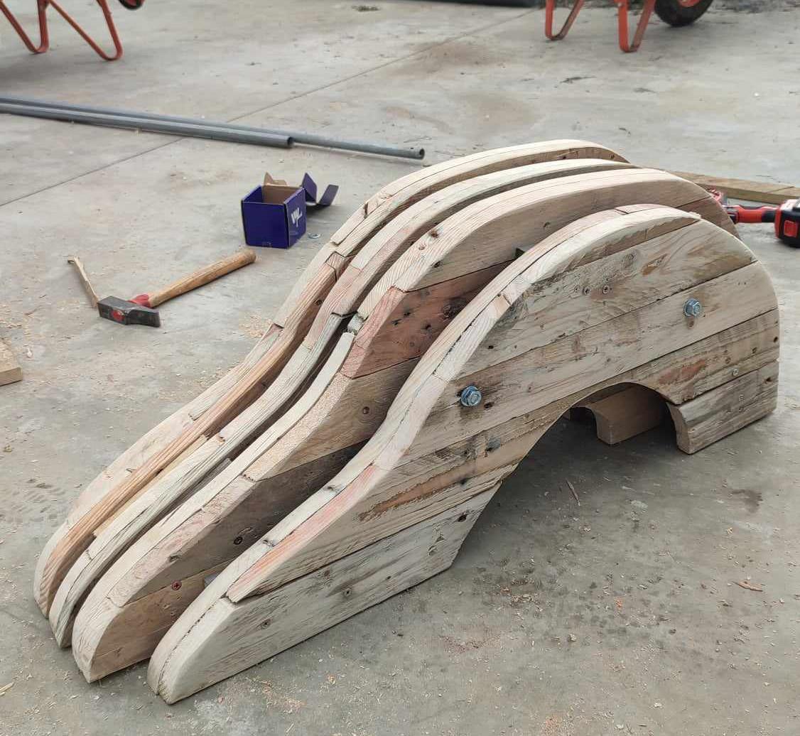 Land Art project on the Institut Agro Angers campus. Design, creation of models and construction of bench-root structures from pallet wood. The project represents roots emerging from the earth, seemingly coming from a grove of trees and surrounding a solitary tree. We wanted to materialize the ties that bind trees together at root level and convey a message of solidarity through this project.
