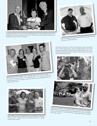 During lunch on Saturday, Georg e Bundy Smith couldn’t keep fro Jr. ’83 and his gu m dancing to the est, Beth Becker, familiar tunes th The music was at filled the air in courtesy of the O front of SamPhil. ld Guard Aces, a wide range of which featured alu classes. mni talent from Renee Kellan Page ’83 and husband Tom, left, get together with PA math instructors Nancy Trepanier Lang ’83 and husband Corbin at a cocktail reception Friday evening.