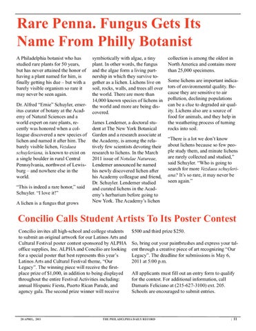 Rare Penna. Fungus Gets Its Name From Philly Botanist A Philadelphia botanist who has studied rare plants for 50 years, but has never attained the honor of having a plant named for him, is finally getting his due – but with a barely visible organism so rare it may never be seen again. Dr. Alfred “Ernie” Schuyler, emeritus curator of botany at the Academy of Natural Sciences and a world expert on rare plants, recently was honored when a colleague discovered a new species of lichen and named it after him. The barely visible lichen, Vezdaea schuyleriana, is known to exist on a single boulder in rural Central Pennsylvania, northwest of Lewisburg – and nowhere else in the world. “This is indeed a rare honor,” said Schuyler. “I love it!” A lichen is a fungus that grows