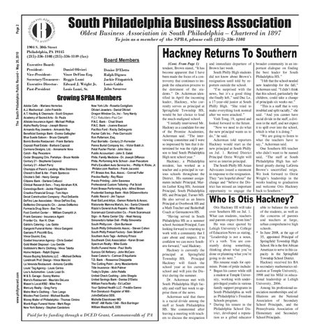 (Cont. From Page 1) tendant, Brown stated, “It has become apparent that I have been made the focus of a controversy that continues to impede the education process to the detriment of the students.” Dr. Ackerman identified in April the incoming leader, Hackney, who currently serves as principal at Springfield Township HS, would be her choice to lead the much-maligned school. “I initially interviewed Mr. Hackney as a candidate for one of the Promise Academies, Ackerman said. “The interviewing committee and I were so impressed by him that it determined he was the right person to lead South Philadelphia High next school year.” Hackney, a Philadelphia resident, has worked as a teacher and a principal in various schools throughout the District. His summer assignments include: Principal, Martin Luther King HS; Assistant Principal, South Philadelphia HS; and Principal, Turner MS. He also served as an Intern Principal at Overbrook HS and a Math Teacher and Basketball Coach at Germantown HS. “Having served in South Philadelphia HS as a summer school Assistant Principal, I am looking forward to returning to work with a community that I care about and respect. I’m confident we can move Southern forward,” said Hackney. Hackney is currently the principal at Springfield Township HS. Principal Hackney will finish the school year at his current school and will join the District during the summer. Dr. Ackerman met with South Philadelphia High faculty and staff last week to apprise them of the news. Ackerman said that there is a racial divide among the staff at South Philadelphia HS. She commented after leaving a meeting with teachers to discuss the resignation