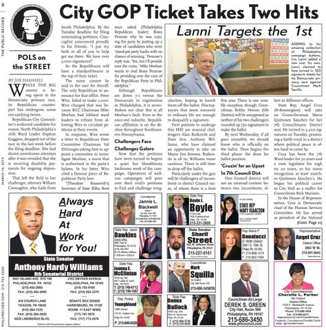 beit in different offices. State Rep. Angel Cruz (D-Kensington) will take on Councilwoman Maria Quiñones Sánchez for her 7th Councilmanic District seat. He turned in 3,200 signatures on Tuesday, promising a battle royal in a district where political peace is often hard to come by. Cruz has been the 7th Ward leader for 30 years and a state legislator for nigh on 20 years, so his name recognition at least matches Quiñones Sánchez’s. He began his political career in City Hall as a staffer for Councilman Rick Mariano. In the House of Representatives, Cruz is Democratic chair of the Human Services Committee. He has served as president of the National (Cont. Page 11)
