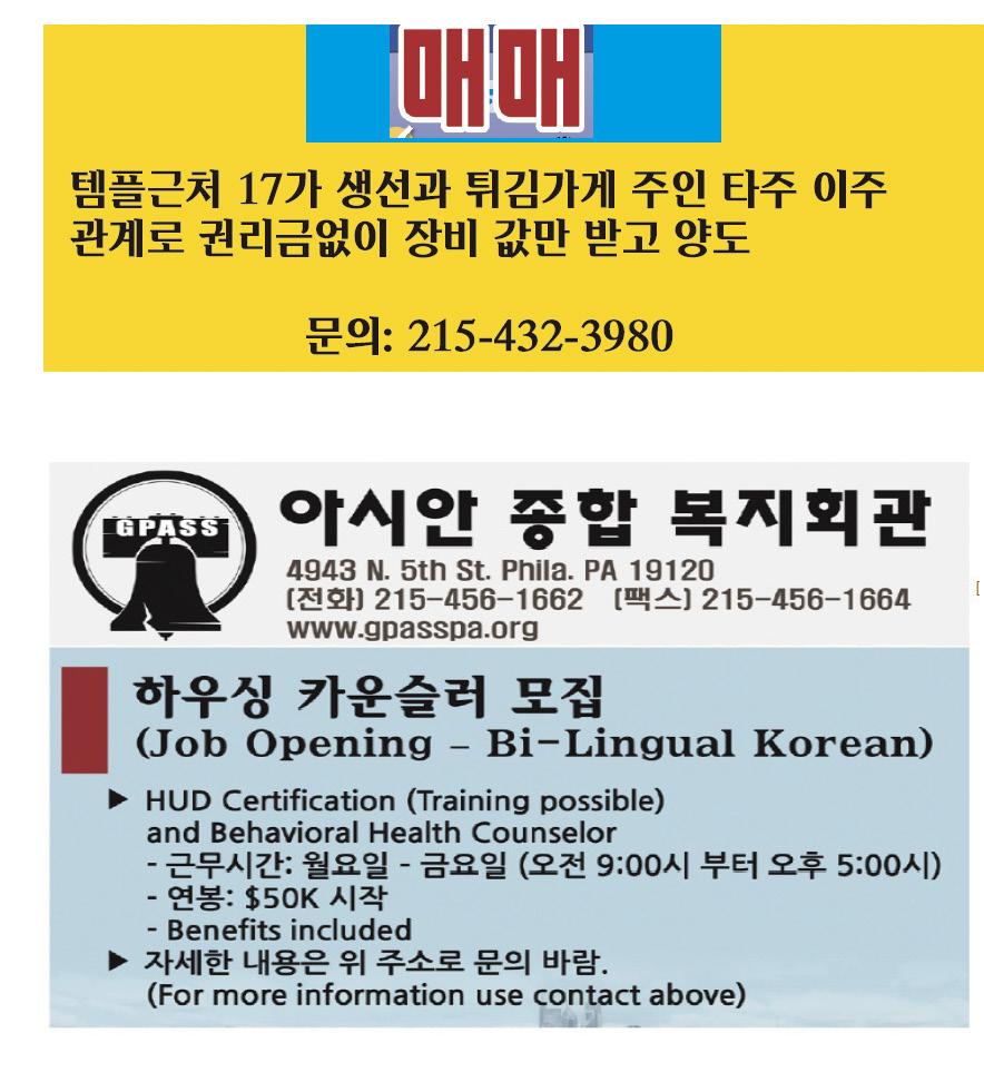 - 문의: 정우현(267-255-4422)/최태석(717-462-5999)