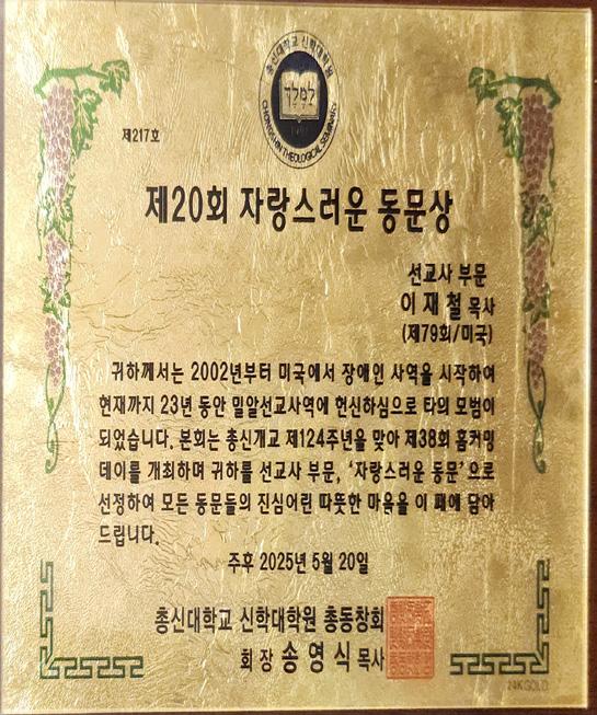 상을 수상한 이재철 목사는 “2 살 때 소아마비로 인한 장애로 힘 겨운 시절을 지냈지만 예수님을