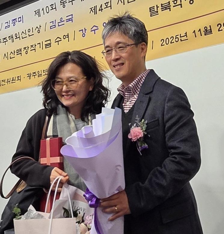 작가상은 고광이 작가에게 돌아갔 다. 또한 정찬열 작가는 특별상을, 안영옥·김거리 문학상, 강수·이만 영 창작기금 등 다양한 부문 수상 자들이 발표되며 문학의 폭넓은 저 력을 보여줬다. 행사를 마무리하며 조직위원회 는 “동주문학상과 시산맥기후환경 문학상이 새로운 문학적 가치를 발 굴하고, 국내외에서 활동하는 문인 들에게 지속적인 창작의 동력이 되 기를 바란다”고 밝혔다. 필라에서 활동하는 김은국 시인 의 수상은
