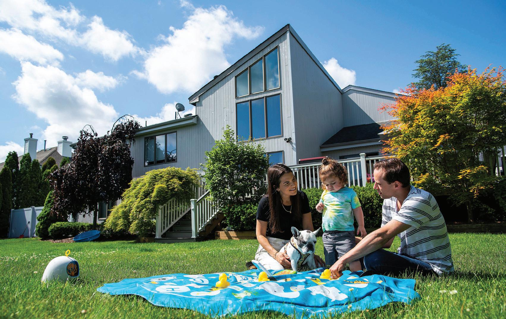 은 교외 주택에서 가족과 함께