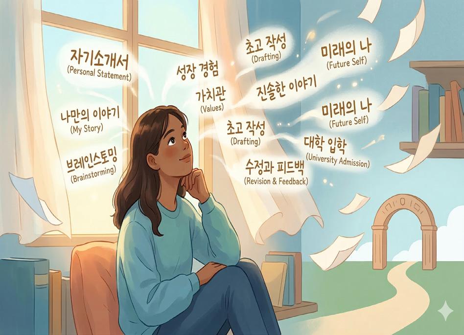 대학 지원 과정에서 가장 많은 학생들 이 부담을 느끼는 부분 가운데 하나가 바로 에세이, 즉 ‘자기소개서(Personal Statement)’ 작성이다. 성적이나 시험 점수와 달리 자기소개서는 지원자가 어 떤 사람인지, 어떤 경험을 통해 성장했 는지를 직접 보여줄 수 있는 중요한 기 회다. 따라서 많은 학생들이 긴장과 부 담을 느끼는 것이 자연스럽다.