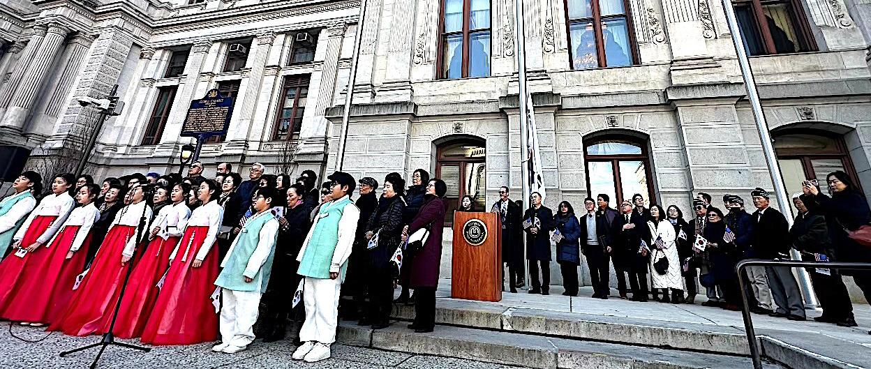 재단회장, 이봉행 필라평통회장, 데빗오 전필라시의원, 이주향 전필라평통회장, 전영현 미동북재향군인회장 등 한인 기관·단체 관계자들이 나와 이민 123주년을 축하했다. 이날 참석자들과 한복 차림 “Dorihwa” 어린이 합창단들이 미주 한인 선조들의 정신을 기리며 애국가를 부르며 국기를 힘차게 흔들었다.