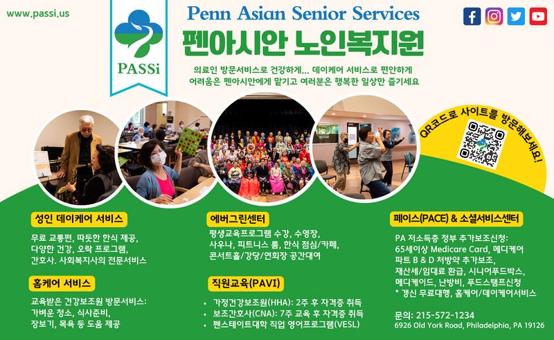 일시 : 2025년 1월 7일(화) 저녁 6시 장소 : PASSi(펜아시안 노인복지센터) (6926 Old York Rd, Philadelphia, PA 19126) ** 저녁 식사가 제공됩니다 **