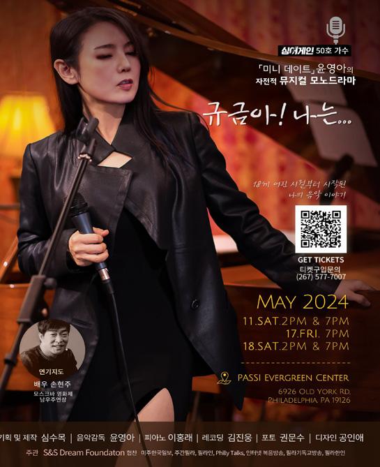 ‘미니 데이트’로 인기를 모았던 가 수 윤영아의 자전적 모노드라마가 뉴 욕과 필라델피아에서 오는 5월 공연 될 예정이다. 이에 더해, 이 작품을 위 해 모스크바 영화제에서 남우 주연상 을 수상한 바 있는 대한민국 최고의 연기파 배우 손현주가 윤영아의 연기 를 지도한 것으로 알려졌다. 뮤지컬 모노드라마, ‘규금아 나는’ 은 인기 정상의 가수에서 평범한 사람 으로 살아가기도 어려운 불행을 겪어 내고 다시금 일어선 윤영아의 자전적 스토리다. ‘규금아 나는’은 필라델피아의 PASSi Evergreen Center에서 5월 11일과 17,18일 3일에 걸쳐 공연된다. 필라델피아에서 활동 중인 기획자 S&S 드림 파운데이션 심수목대표가 기획하는 ‘규금아 나는’은 가수 윤영 아의 연극보다 더 극적인 삶을 완성도 높은 작품에 담아 풍성한 볼거리 그리 고 수준 높은 감동과 재미를 관객들에 게 선사할 것으로 기대된다.