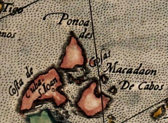 Detail of ‘Cebu’ and ‘Cuba’ from a map by Fausto Rughesi (c.1597) (image courtesy of Barry Lawrence Ruderman)