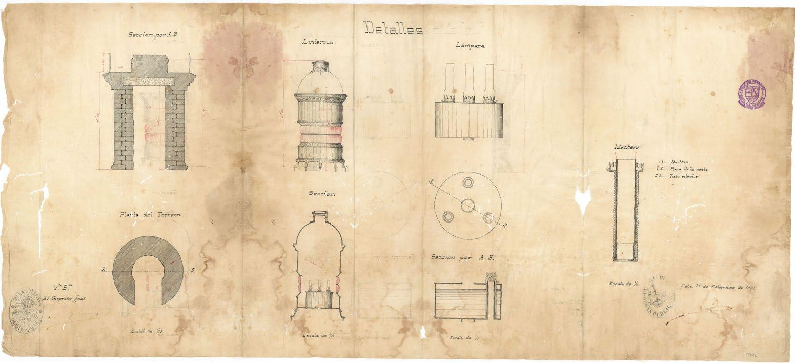 Proyecto de un torreon para luz del puerto de Cebù Plano Focal (left) with (below) its Detalles, plans from the Obras Publicas dated September 25, 1869 (images courtesy of the National Archives of the Philippines)