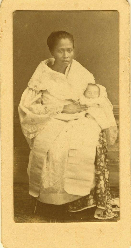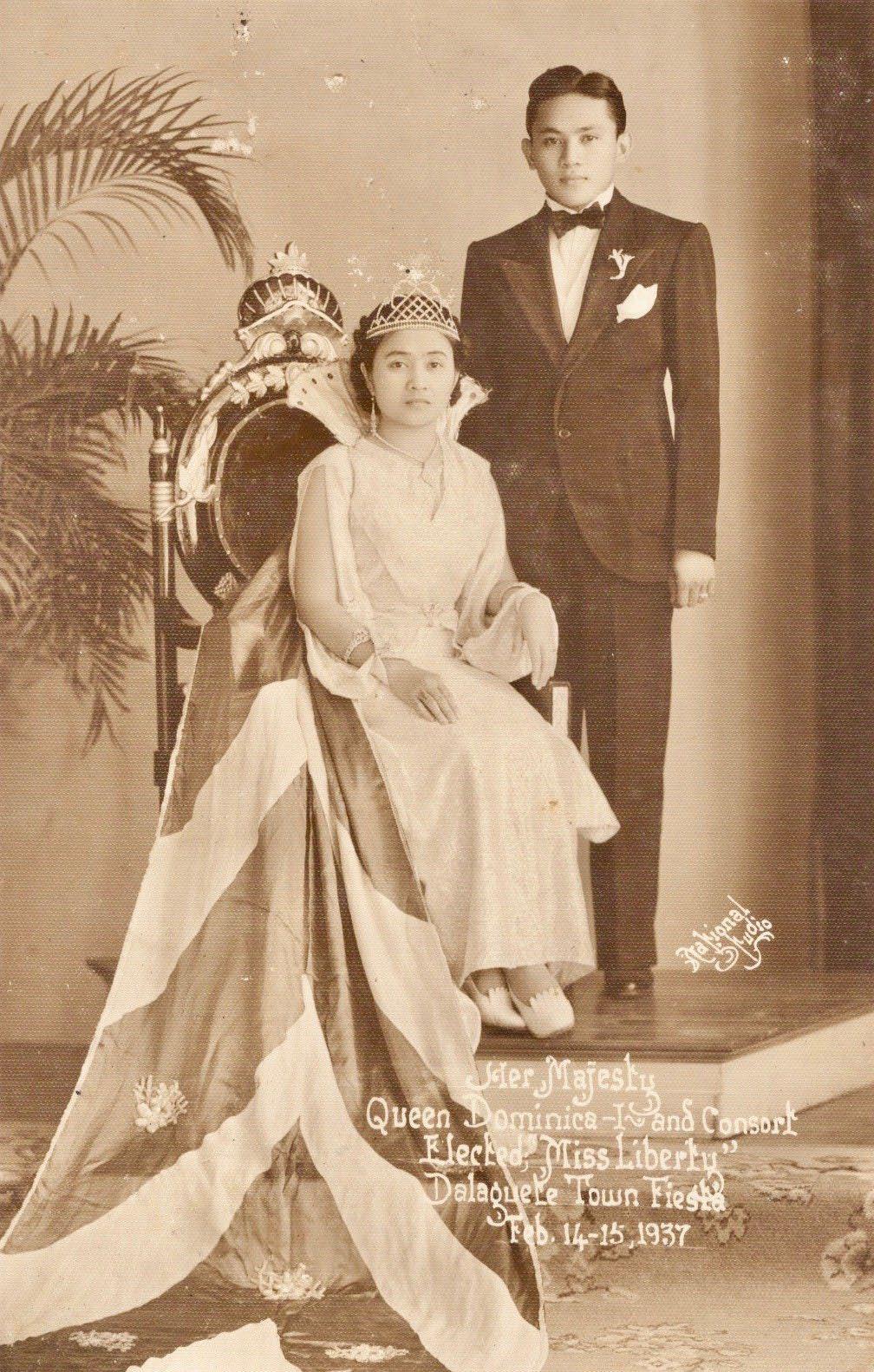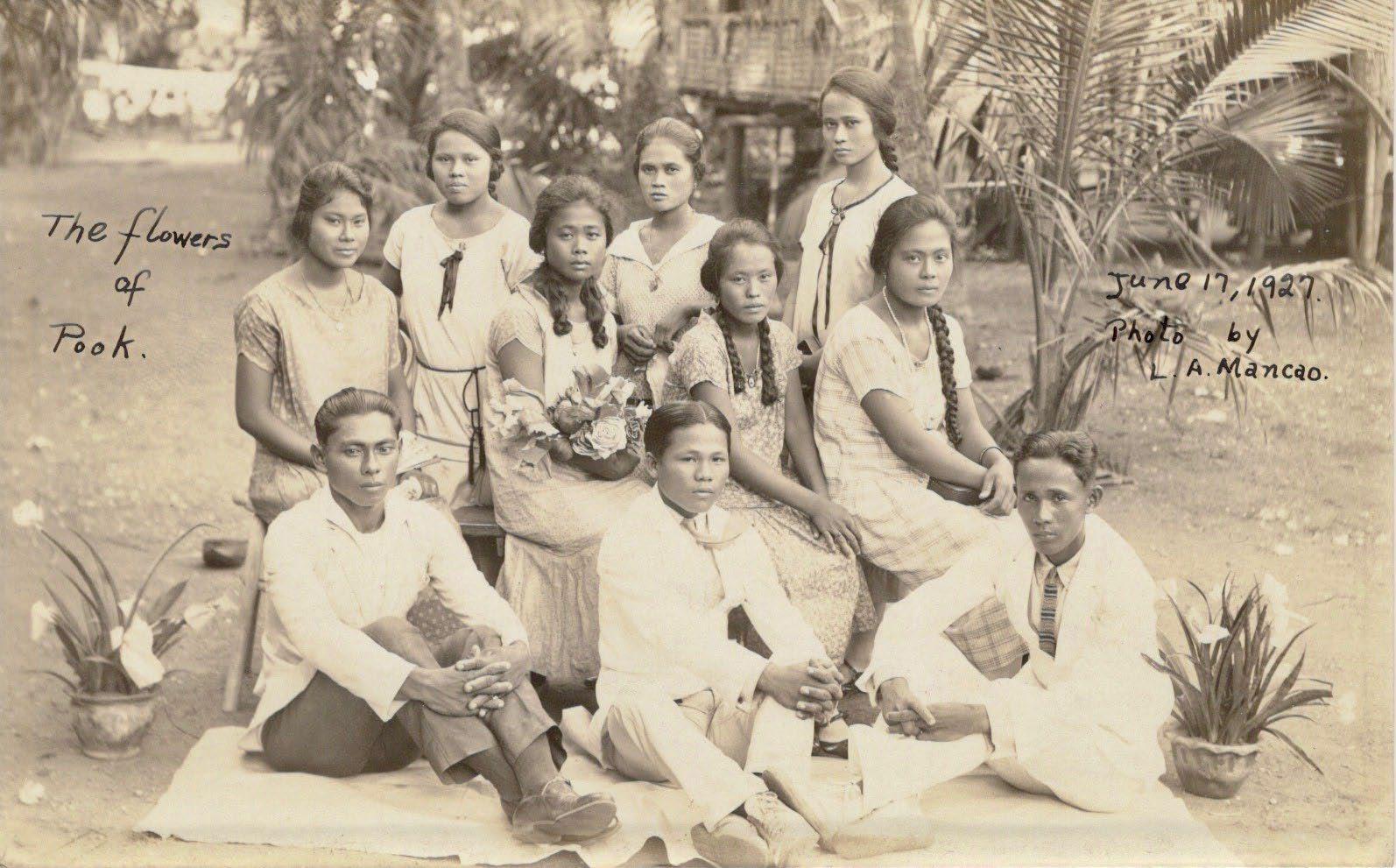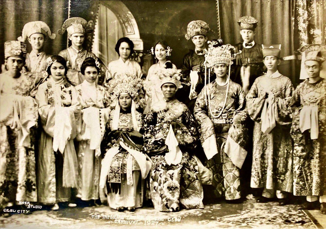 Group portrait of the Imperial Court at the 1927 Cebu Carnival, clad in fanciful oriental costumes, with at lower center the Empress Encarnacion Livionko and her consort Victorino Climaco. Rosa Studio, Cebu City; the proprietor, Rosa Gonzalez de Tumulak, was the only Filipino woman photographer before World War II. (from the collection of Michael G. Price)