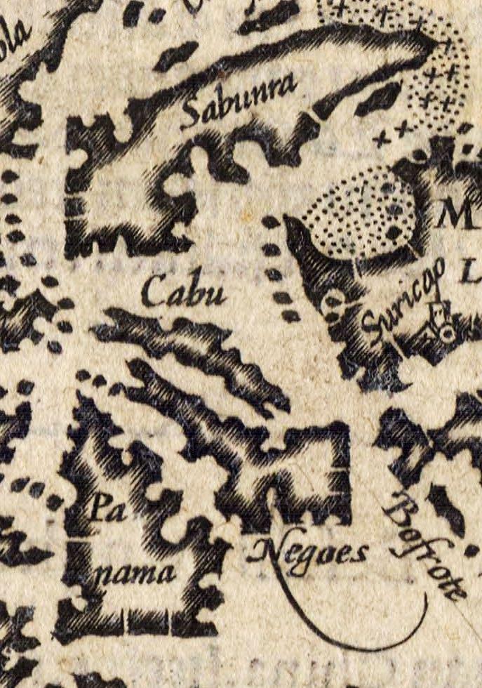 Detail of ‘Cabu’ on Insulae Philippinae by Petrus Kærius / Barent Langenes (1598) (author’s collection)