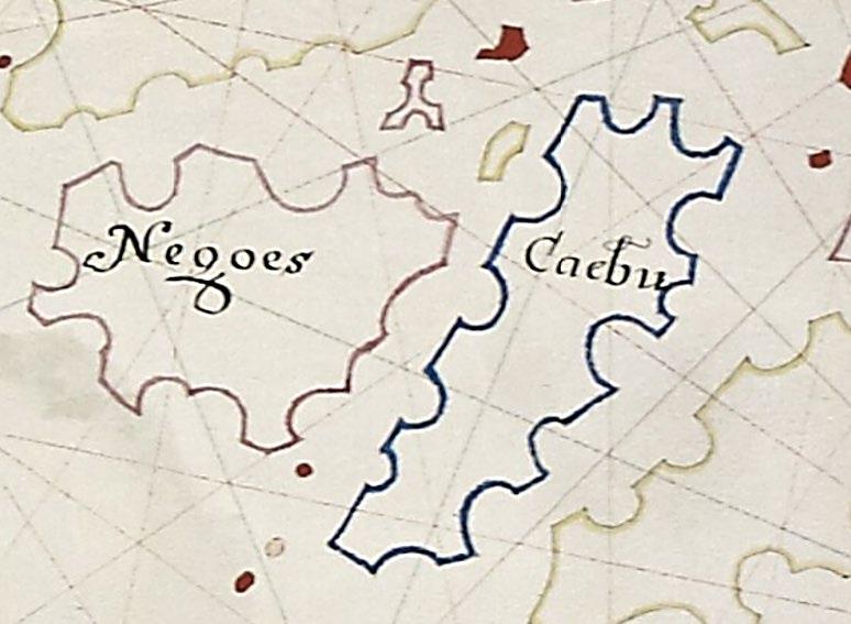 In the detailed manuscript account (and the accompanying maps) of the expedition by Antonio Pigafetta, Relazione del primo viaggio intorno al mondo, written in c.1525, the island is named Zzubu, although Zubu also appears in some editions of Pigafetta’s work.(1) The name is believed to have been the Spanish version of that used by the inhabitants of the island and its main town: Sugbo, also pronounced Sugbu in Visayan, and with an alternative spelling of Sogbú (2) A possible explanation for Pigafetta’s spelling may be that, because he was Italian and worked in Sevilla after he moved to Spain, he learned to speak Spanish with an Andalucian accent, where the voiced sibilant ‘z’ is used instead of ‘s’.(3)