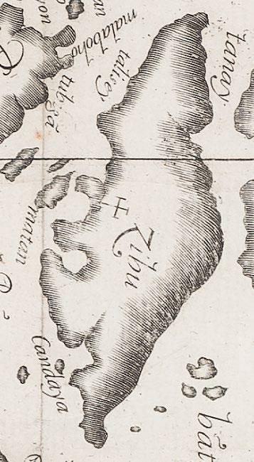 Detail of ‘Zebu’ from Carta Hydrographica y Chorographica delas Yslas Filipinas by Fr. Pedro Murillo Velarde (1734) (image courtesy of the Library of Congress)