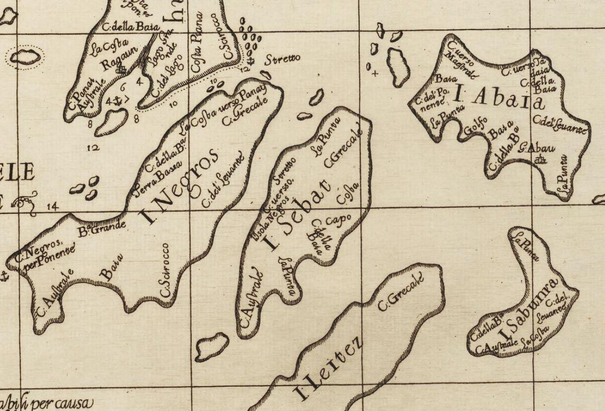Detail of ‘Isla de Cebu’ from Carta Chorographica del Archipielago de las Islas Philipinas by Francisco Diaz Romero / Antonio de Ghandia (1727) (image ©The British Library Board)
