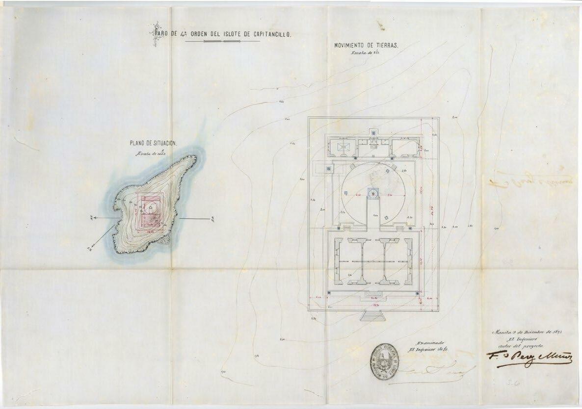 Faro de 4o Orden del Islote Capitancillo, plan by the Servicio de Faros dated December 9, 1893 (image courtesy of the National Archives of the Philippines)