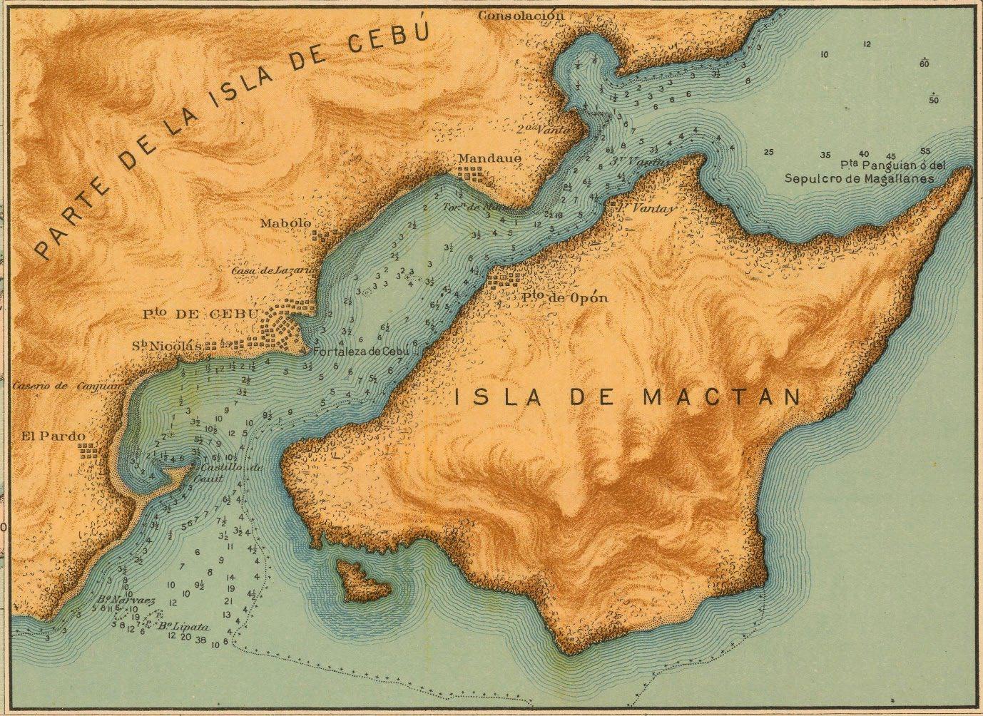 Four fanales (beacons) are now shown in the vicinity of Cebu Harbour: fixed red lights at the northwestern tip and off the southwestern corner of Mactan; a fixed white light at the port of Cebu; and a fixed red light near the City of Mandaue. The last of these, today known as the Torre de Mandaue, is also mistakenly called the Bantayan sa Hari (a tower intended to watch out for Moro slave raiders). According to Trizer Dale Mansueto: “This former torreon can still be seen today, a badly restored circular watch tower at the foot of the old Mandaue Mactan Bridge in Barangay Opao.”(5)