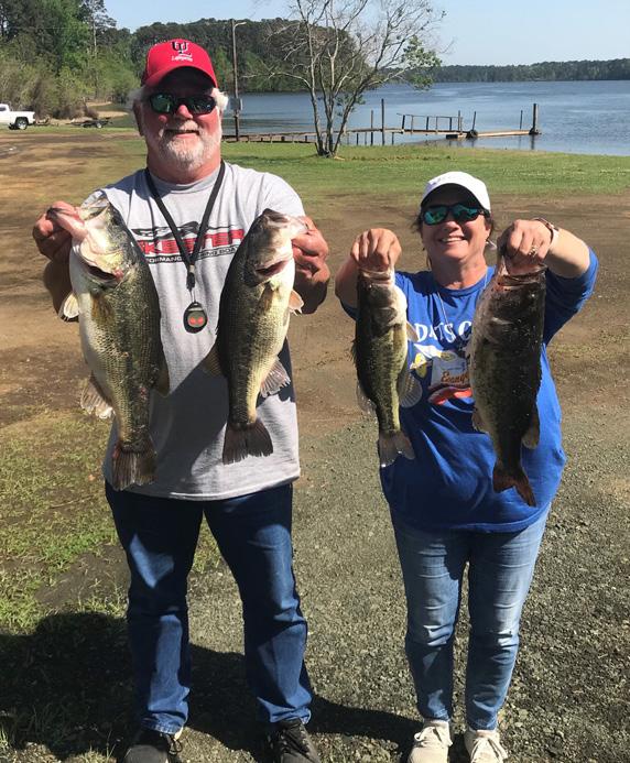 John and wife, Nanette, with their catches from a twoday Acadiana Bass Club tournament on April 10, 2021.