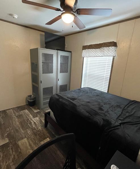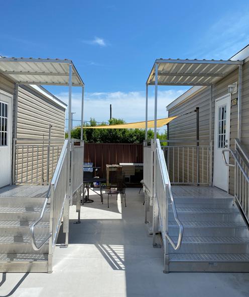 The new mobile home trailers feature a four-bedroom, four-bath floorplan with each bedroom getting its own private bathroom—one of the most frequently requested upgrades. Other features include a washer and dryer, expanded kitchen and common areas, concrete patio and outdoor seating, covered porches, overhead AC vents for improved distribution and more. Some trailers also