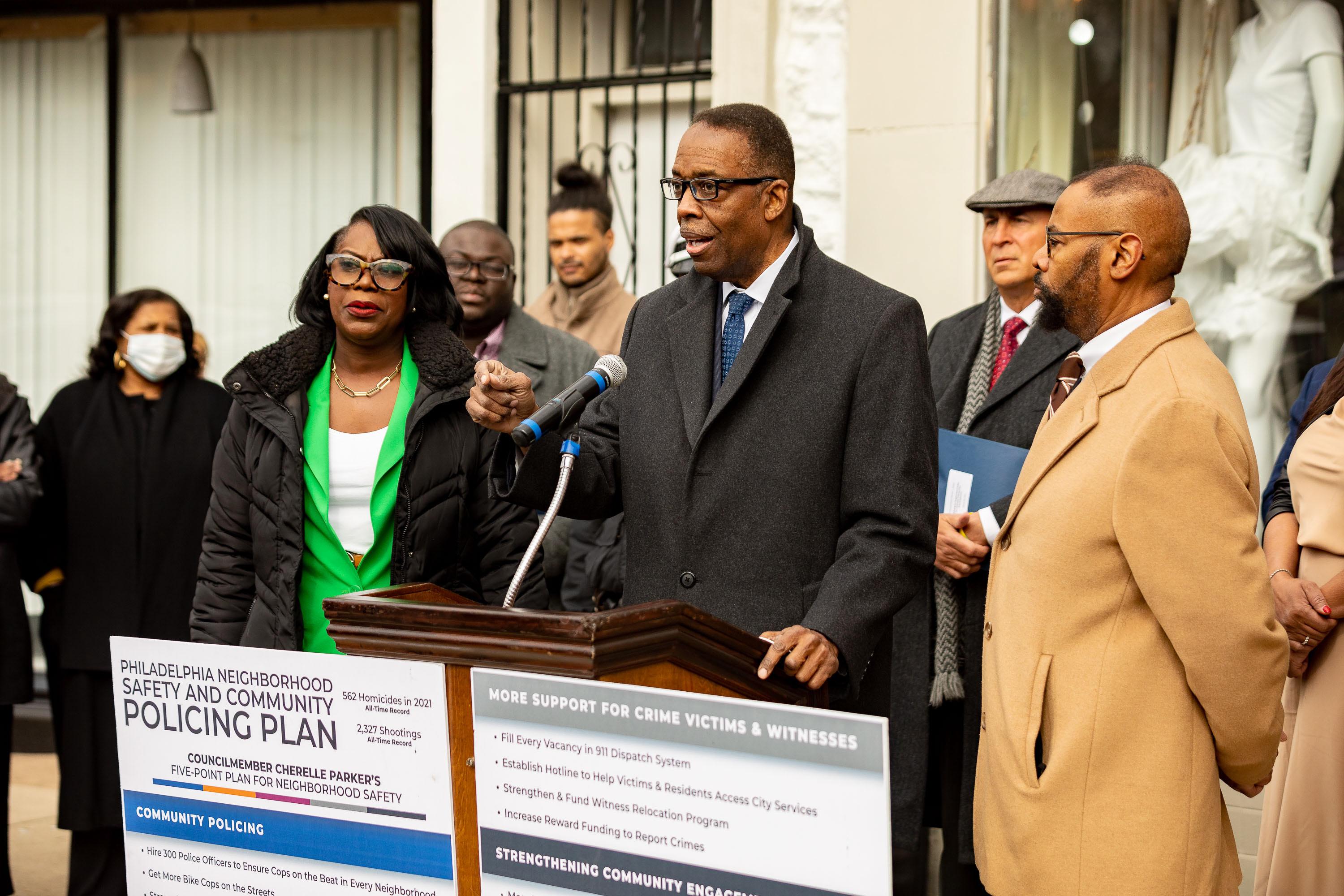 Councilmembers Katherine Gilmore Richardson, Curtis Jones Jr. and Mark Squilla join Council President with community leaders