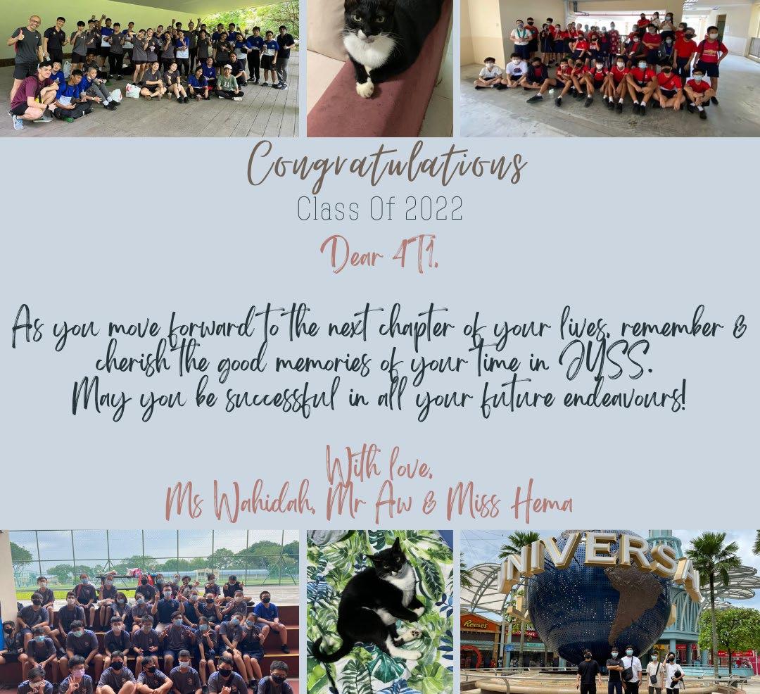 Thoughout my 4 years in Juying, i would like to express gratitude to my teachers and appreciate how you all are willing to help me with my studies. thanks for all the memories you have created with me and i definitely would still cherish them forever in life you all definitely made my journey more enjoyable by cracking jokes and such during lesson times.