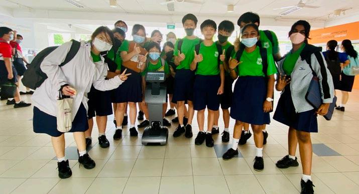 Secondary 1 students interacting with Juying’s A.I Robot TEMI