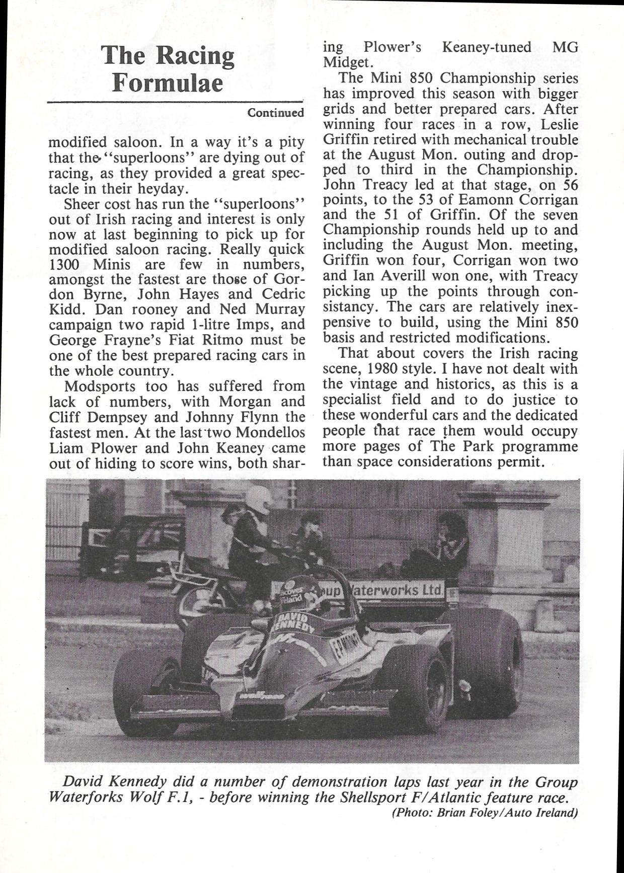 1980 Phoenix Park Motor Races, Ireland - Programme