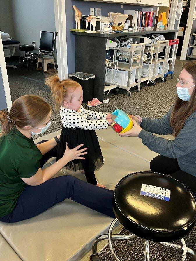Onyx’s parents were advised physical therapy could help her reach some of the developmental milestones she was missing. “We started looking for physical therapy locally and no one was willing to see her because she needed a lot of work, and they weren’t comfortable working with her. Thankfully Lily gave her a chance. She was excited to work with her, and we live very close to the clinic.” Lily is Lily McDowell, PT, DPT, a Physical Therapist at the Phoenix Physical Therapy clinic in Chambersburg, Pennsylvania. Stephanie scheduled an initial evaluation. “We got our evaluation done with Lily and she was amazing, so patient and very helpful. She recognized that Onyx was not able to pull to stand, not walking, not crawling. She was at a six to eight month level. She was literally just sitting.” Lily created a long term plan for Onyx. Stephanie knew she chose the right facility for her daughter, even though the work did not look like typical physical therapy. “They used play therapy. Kids learn best through play. So, we had a bunch of toys.”