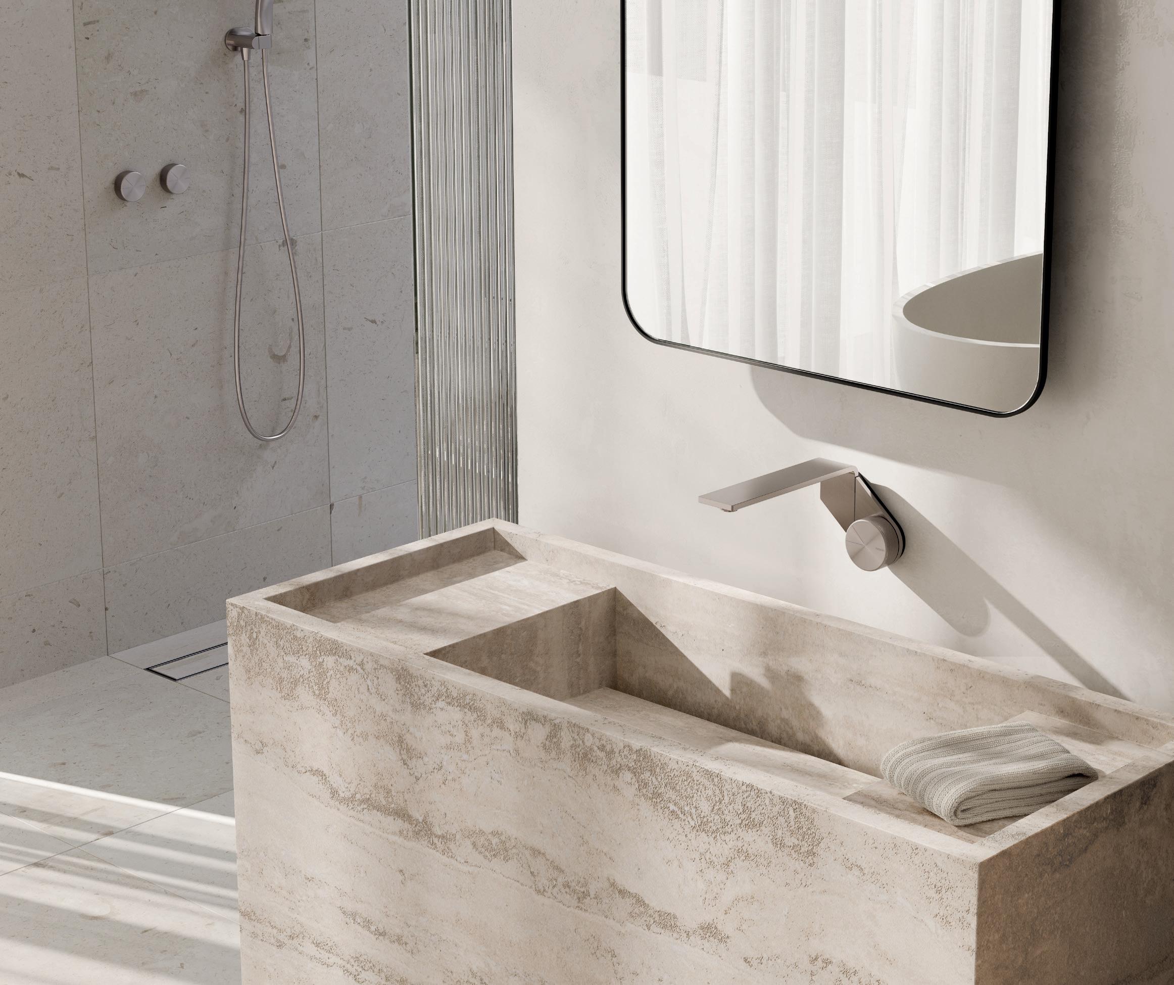 This finish is characterised by its gentle, soft metallic appearance and brushed lines on its surface. Brushed Nickel can be your go-to finish when looking to reference a refined colour palette, teaming graciously with sophisticated tile choices. It is one of our most versatile finishes.