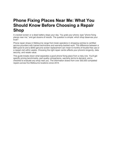 FixUPP - Phone Repair Centre is a professional repair centre for phones, tablets, computers, and game consoles serving Melbourne since 2014. Operating as a certified Apple Independent Repair Provider (IRP) with over 10 years of experience, we bridge the gap between premium service and affordable pricing. We understand how much you rely on your technology for work, study, and entertainment, which is why we have dedicated the last decade to restoring more than 300,000 devices with precision and care. Fast, Flexible, and Transparent. We know downtime is frustrating. That’s why we focus on Same-Day Service, with most screen and battery replacements completed in just 30 to 60 minutes. As an Apple IRP, we offer you the power of choice: select Genuine Apple parts for factory-standard performance or high-quality Premium OEM parts to suit your budget. Whichever you choose, you receive transparent upfront pricing with no hidden fees. Expertise You Can Trust. Our technical expertise extends beyond just screens. We are strategically focused on advanced diagnostics and repairs for Samsung Galaxy devices (including Z Fold/Flip) and Game Consoles (PlayStation, Xbox, Nintendo). Whether it’s a PS5 HDMI port, a MacBook logic board, or a water-damaged iPhone, our skilled technicians have the tools to handle complex issues. We stand behind our craftsmanship with a comprehensive Lifetime Warranty on parts and labour. Conveniently Located Across Victoria FixUPP brings expert repair services closer to you with 5 locations in Windsor, Springvale, Frankston, Brighton, and Somerville. Stop by today and experience the service that makes us Victoria’s trusted choice for electronic repairs. FixUPP - Phone Repair Centre Address: 21/268-274 Springvale Rd, Springvale VIC 3171 (03) 85130380 Website: https://repaircentrevic.com.au Hashtag: #fixupp #fixupp_phone_repair_centre #phone_repair_centre #repair_centre_vic