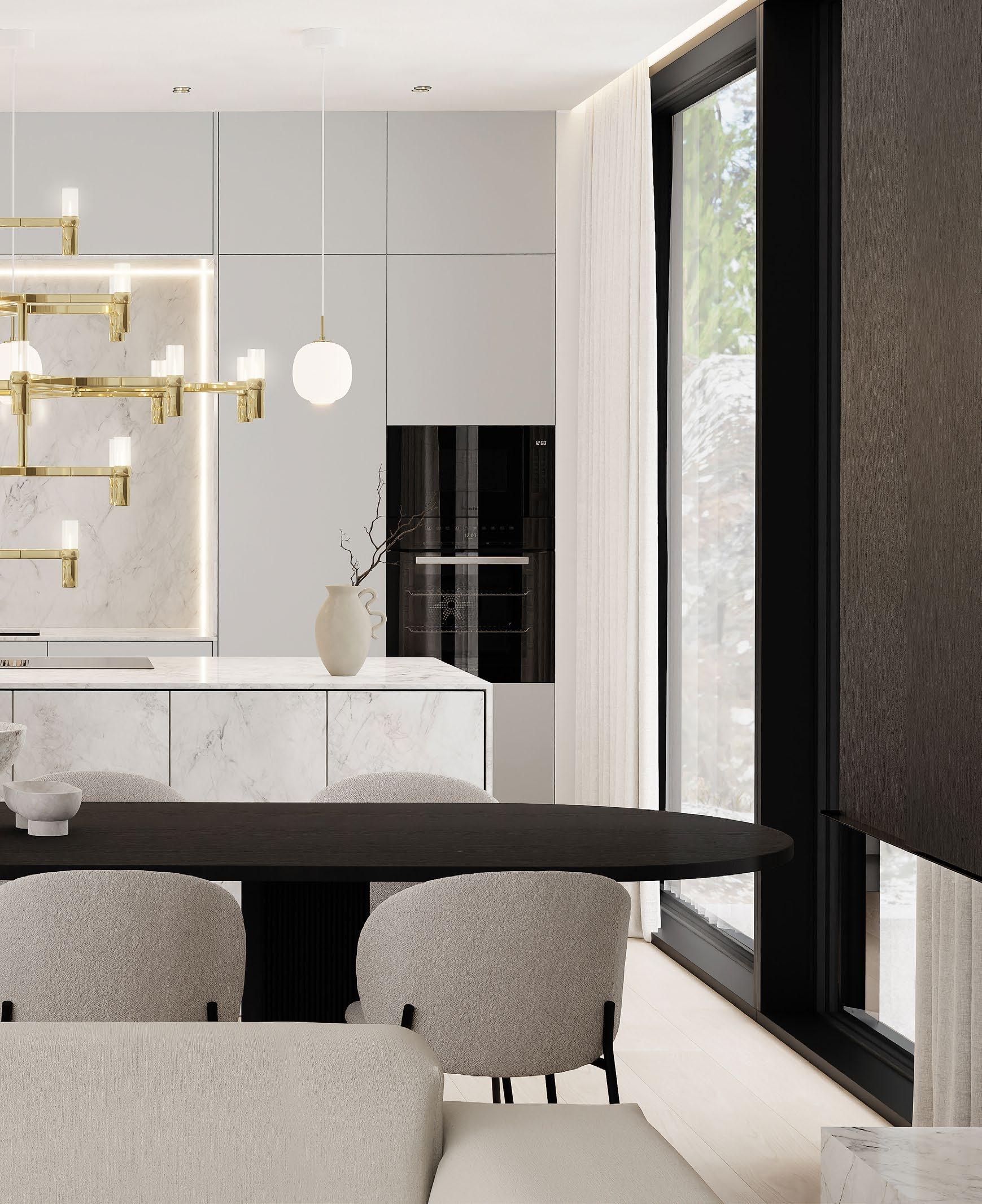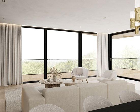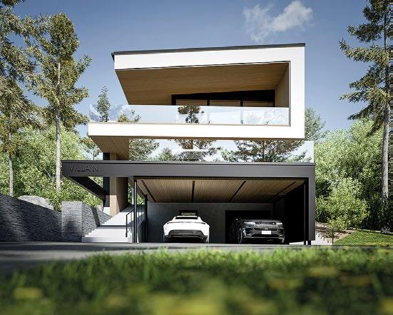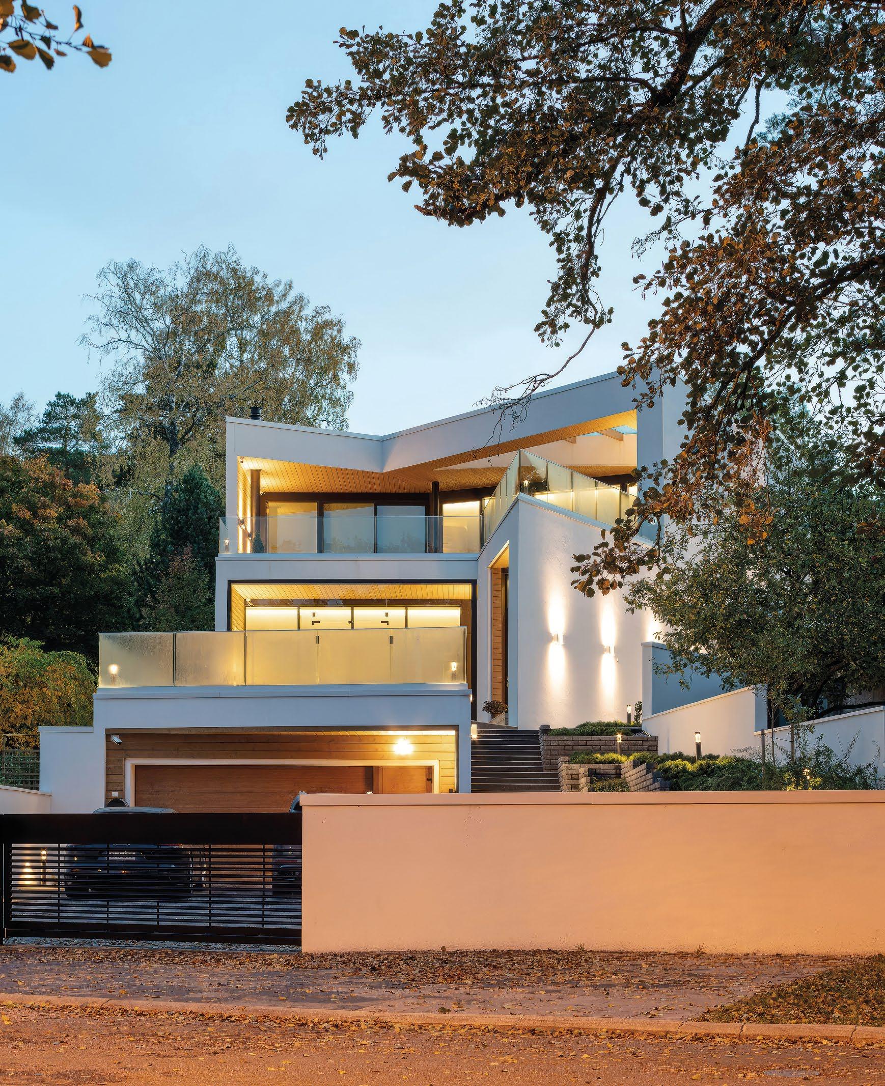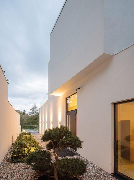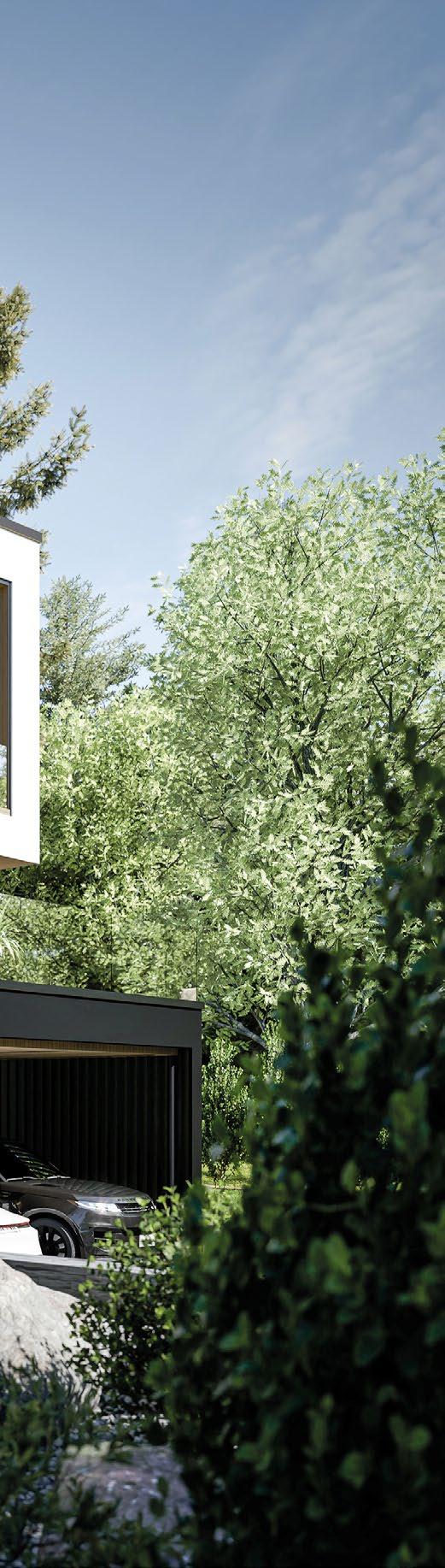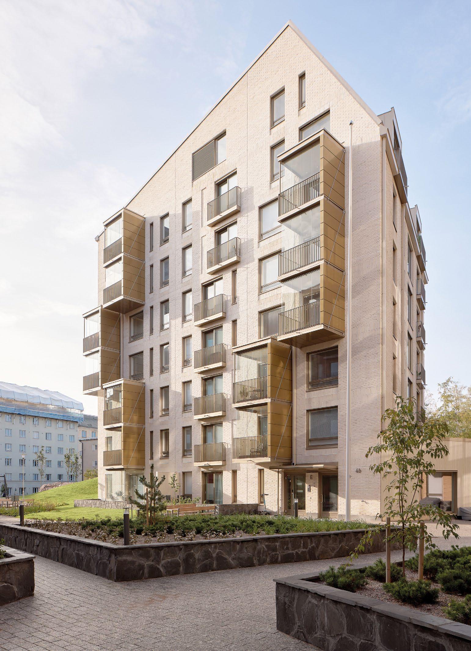 sin kautta suoraan luontoon jossa sijaitsee hieno koskematon kallioluonto ja puistoalue. Rakennuksen spa-osasto ja tunnelmallinen takkahuone avautuu kallio luontomaisemaan joiden edessä oleva terassialue yhdistää rakennuksen saumattomasti kallioon kalliota mukaillen. Ylimmässä kerroksessa olevat olohuone, ruokailutila ja keittiö avautuvat suurten lasipintojen kautta alarinteen suuntaan avaten näkymät koko asuinalueen yli. Oleskelutiloja ympäröivät terassit jotka antavat näkösuojaa kadulle, mutta mahdollistavat asukkaiden nauttia näkymistä myös ulkotilojen kautta. Oleskelutiloja ja terasseja löytyy aina päivän kulun mukaan eri ilmansuuntiin.