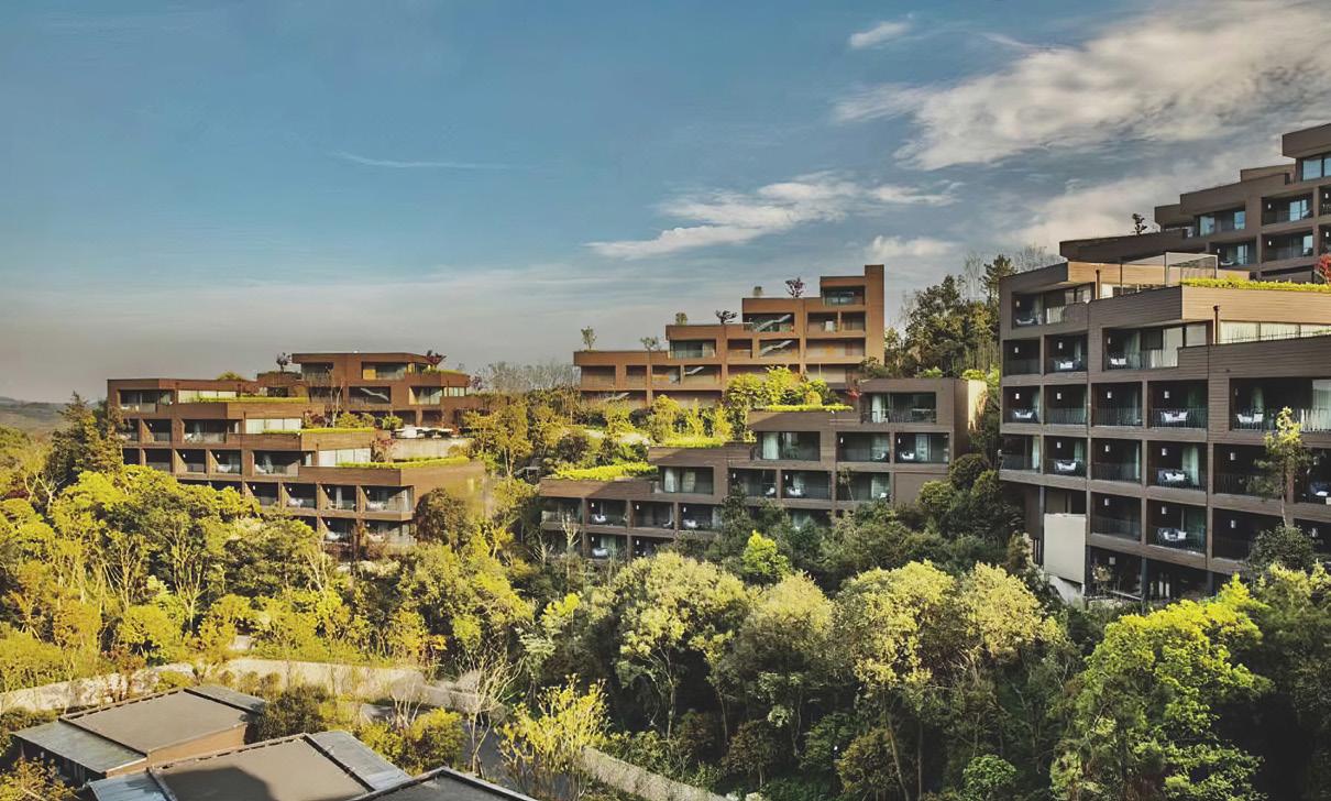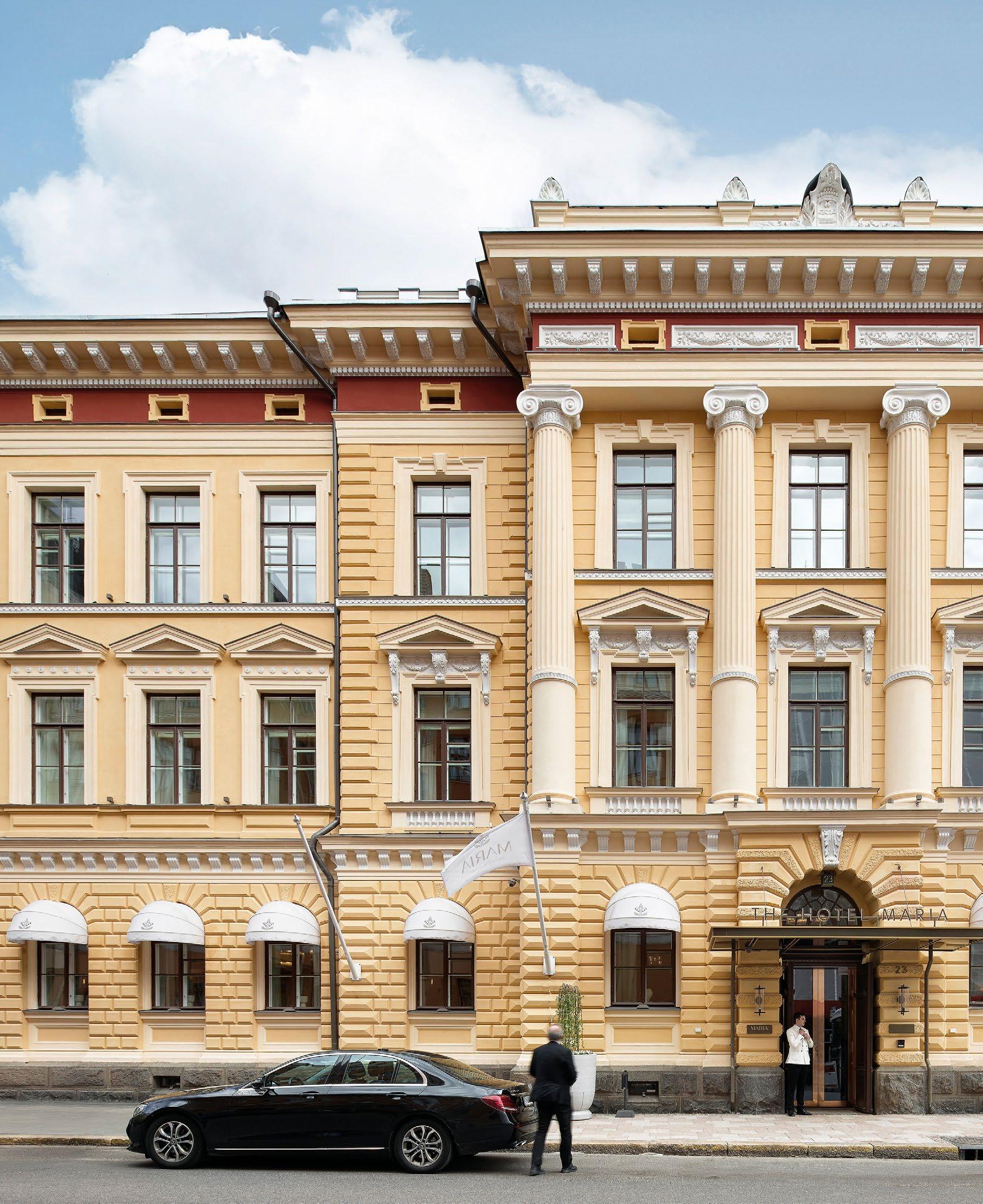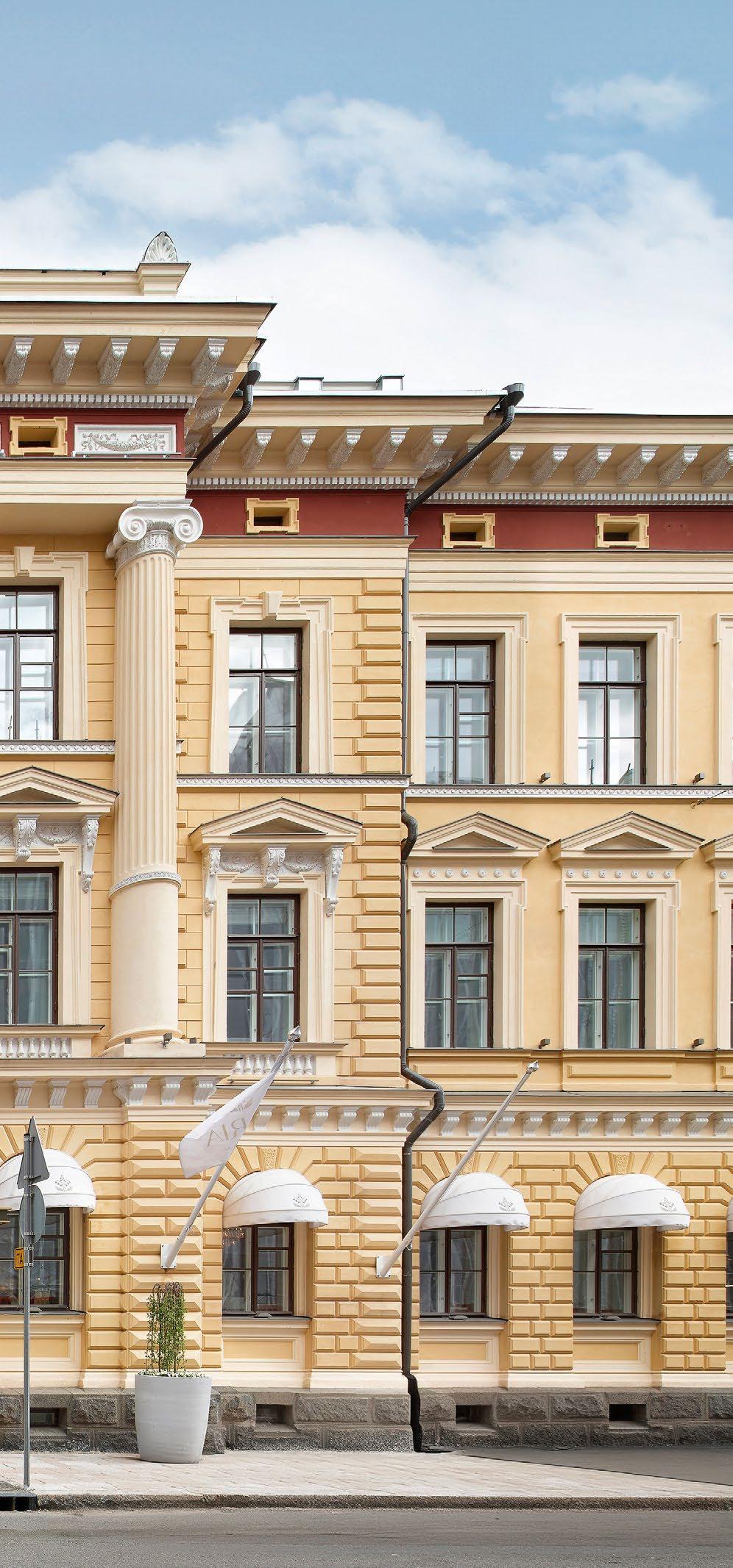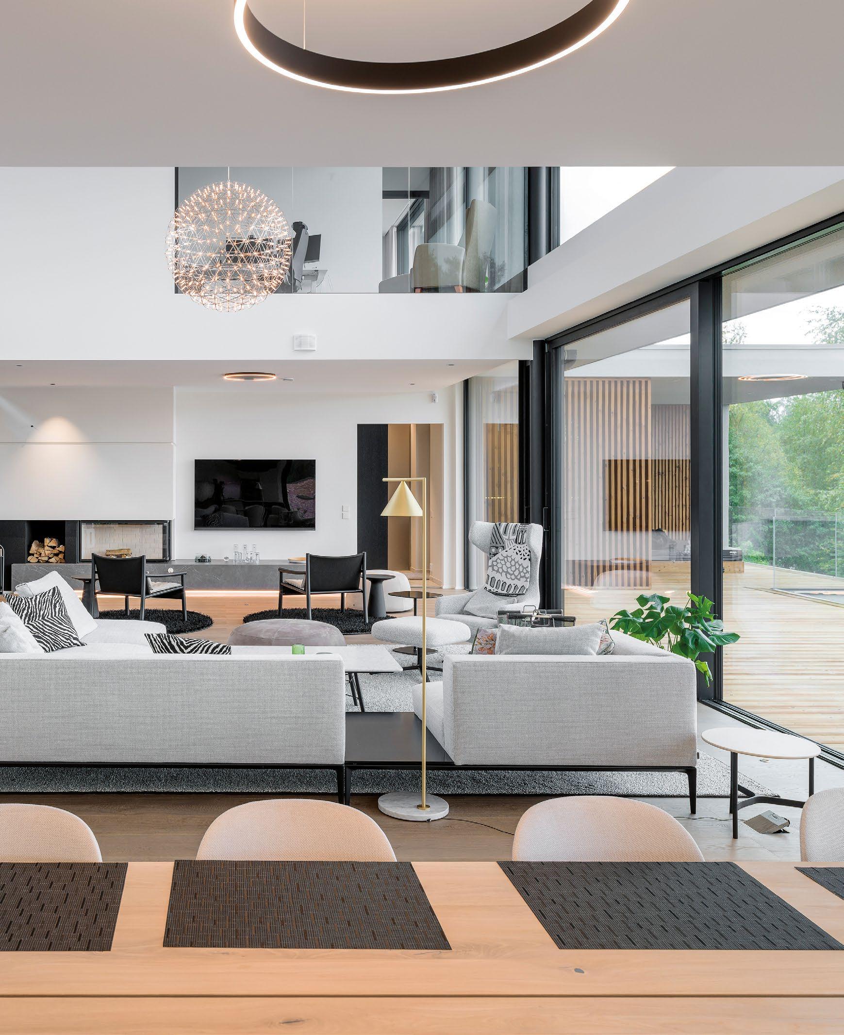 sin kautta suoraan luontoon jossa sijaitsee hieno koskematon kallioluonto ja puistoalue. Rakennuksen spa-osasto ja tunnelmallinen takkahuone avautuu kallio luontomaisemaan joiden edessä oleva terassialue yhdistää rakennuksen saumattomasti kallioon kalliota mukaillen. Ylimmässä kerroksessa olevat olohuone, ruokailutila ja keittiö avautuvat suurten lasipintojen kautta alarinteen suuntaan avaten näkymät koko asuinalueen yli. Oleskelutiloja ympäröivät terassit jotka antavat näkösuojaa kadulle, mutta mahdollistavat asukkaiden nauttia näkymistä myös ulkotilojen kautta. Oleskelutiloja ja terasseja löytyy aina päivän kulun mukaan eri ilmansuuntiin.