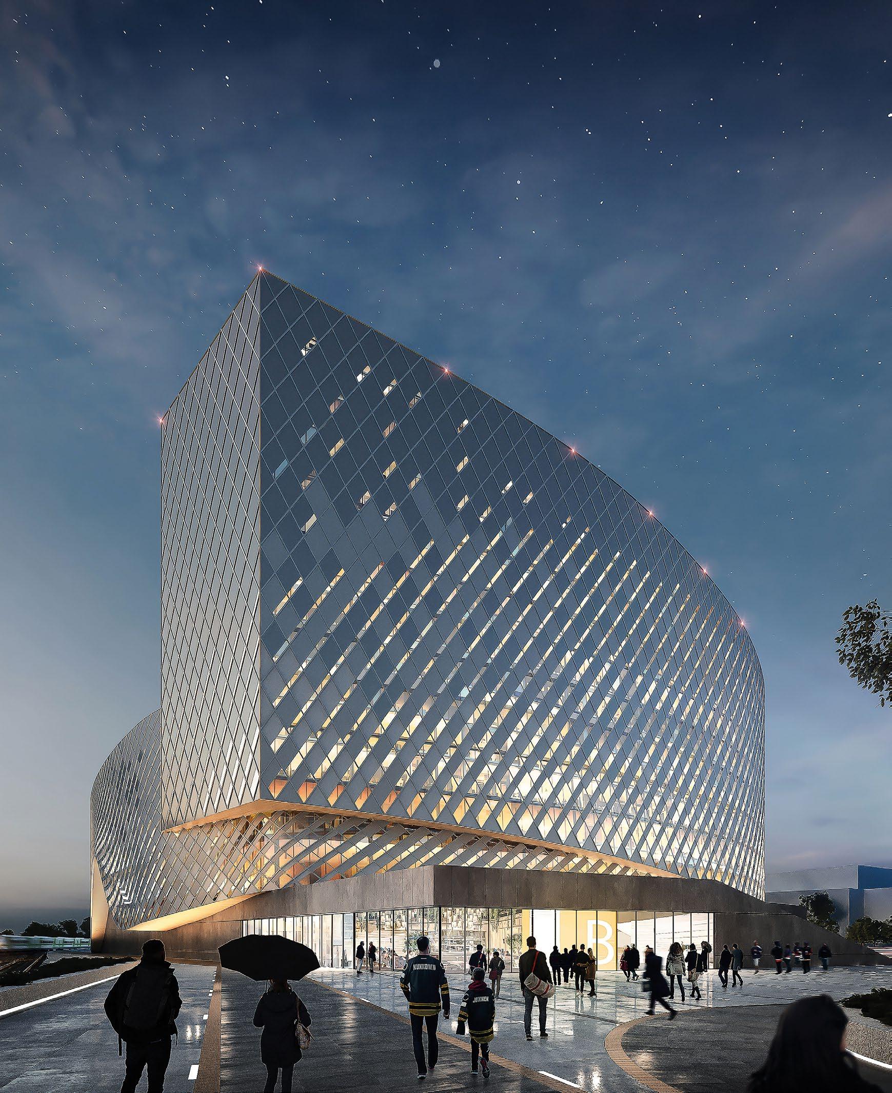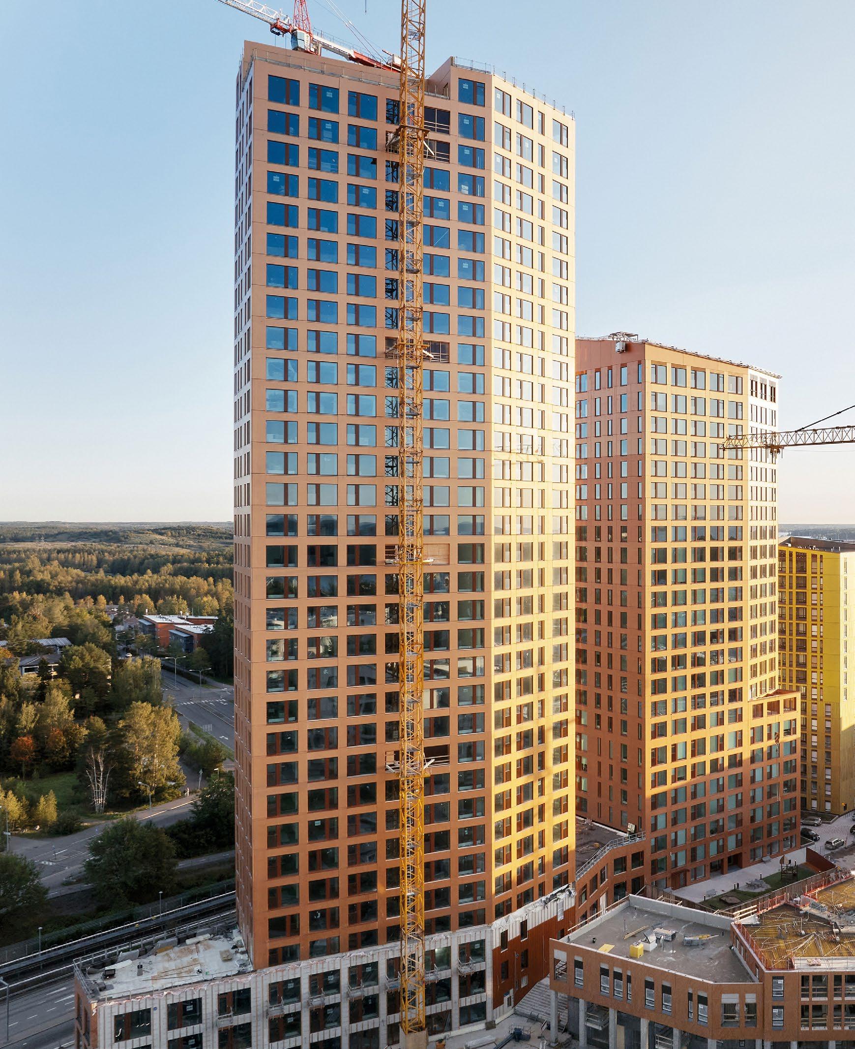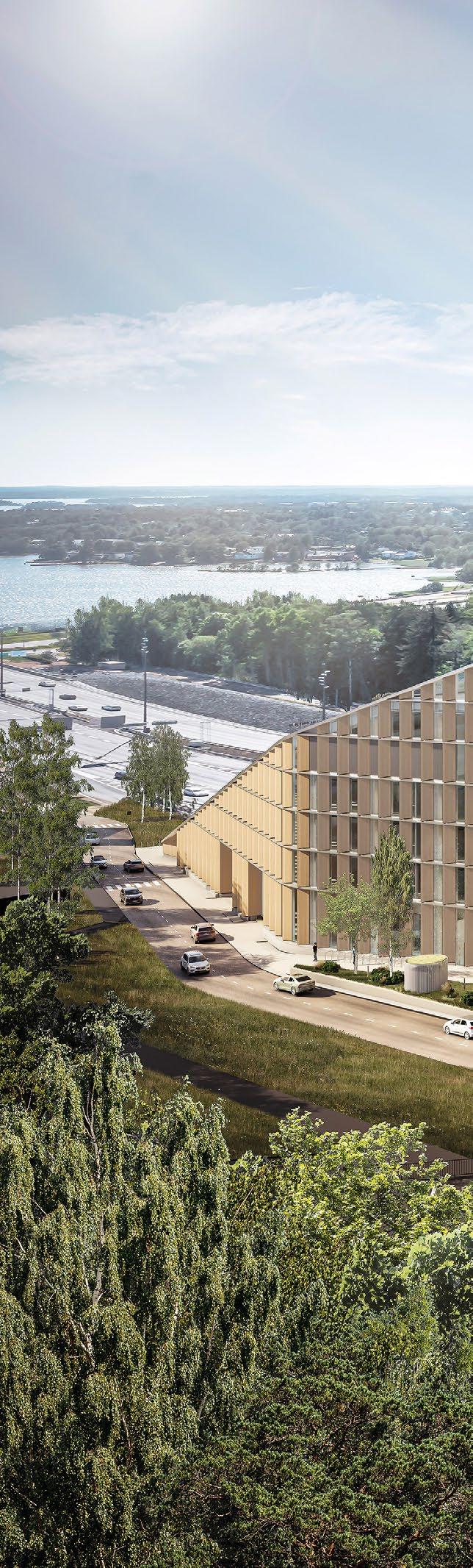 Keilaniemen Portti, Arco Architecture Company. Rakennus tulee olemaan ainutlaatuinen puurakentamisen taidonnäyte. Lähes 60 metrin harjakorkeudella siitä on tulossa yksi Euroopan korkeimmista puurakenteisista toimistorakennuksista ja korkeimmista puurakennuksista Suomessa.