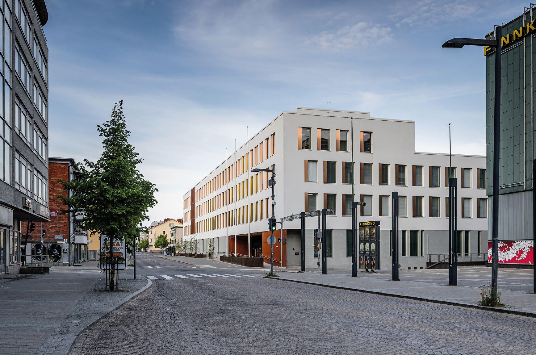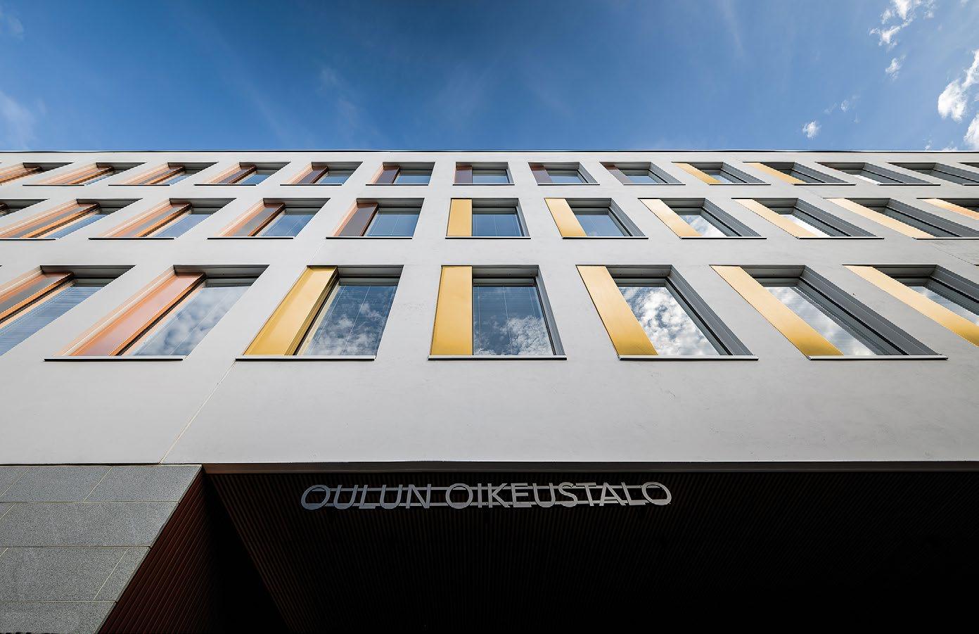 työtapoja ja digitalisaatiota, mukaan lukien sähköiset oikeudenkäynnit. Rakennuksessa yhdistyvät laadukkaat ja kestävät luonnonmateriaalit sekä oikeustalon arvokkuutta korostava suunnittelu. Rakennuksen ulkopuoli on verhoiltu graniitilla ja rapatulla tiilellä. Sisätiloissa on käytetty lämpimiä ja rauhoittavia puupintoja. (02)