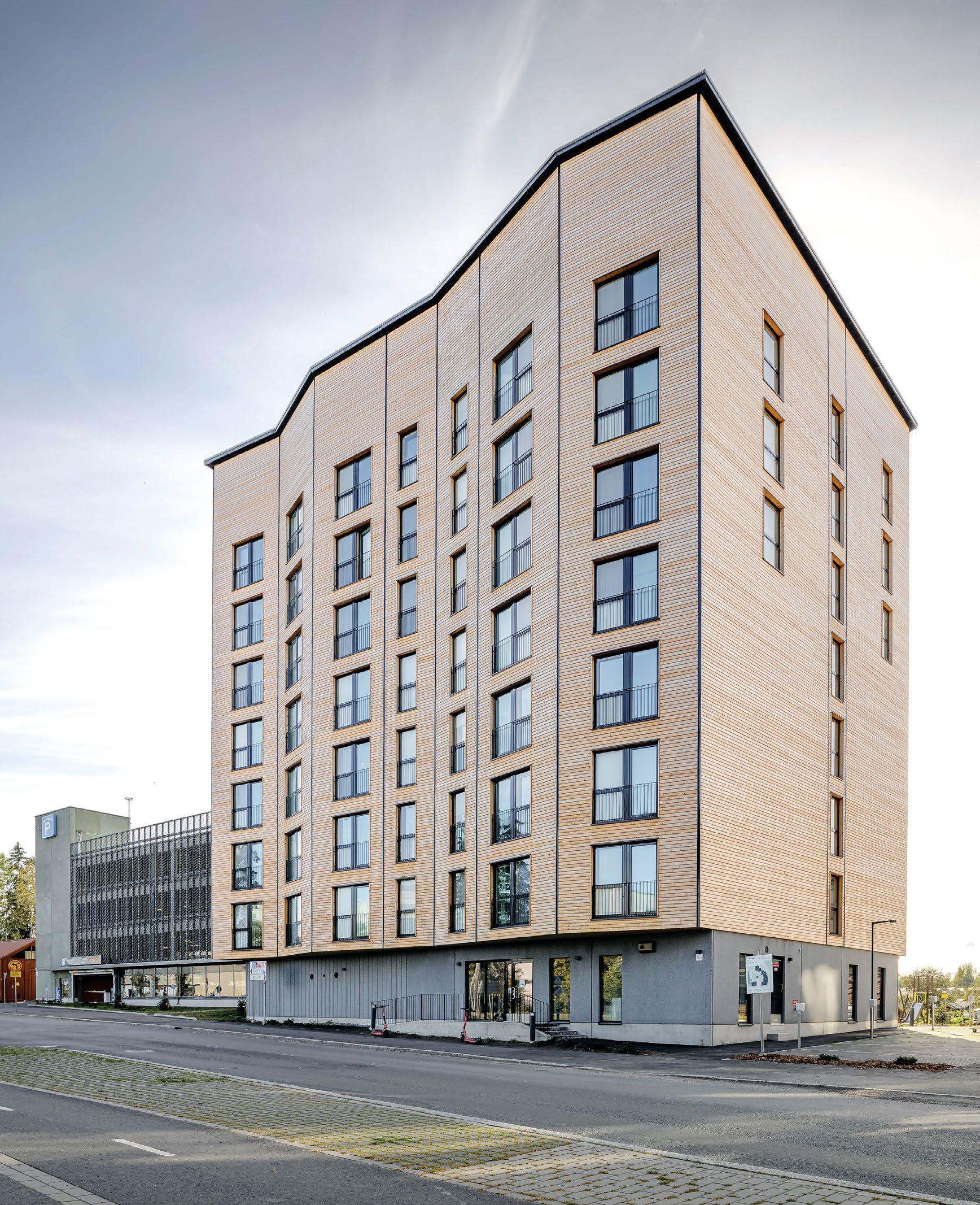 vertoautoilijan yli 10 vuoden hiilidioksidipäästöjä. Puurakentamisen osuus kerrostalorakentamisessa on Suomessa kolme prosenttia.
