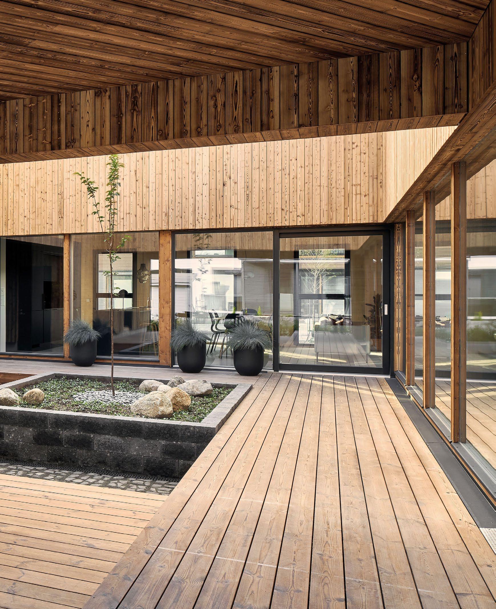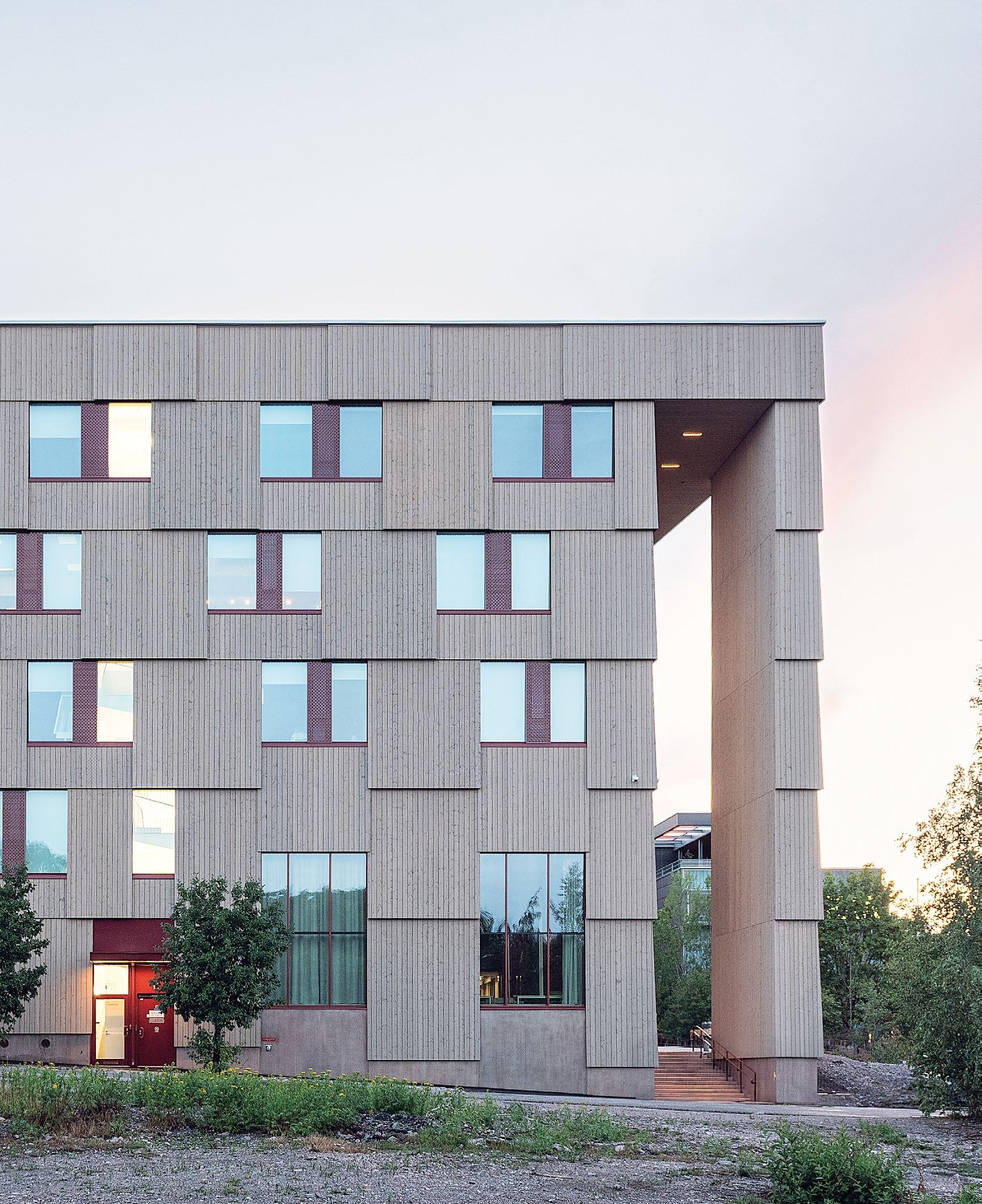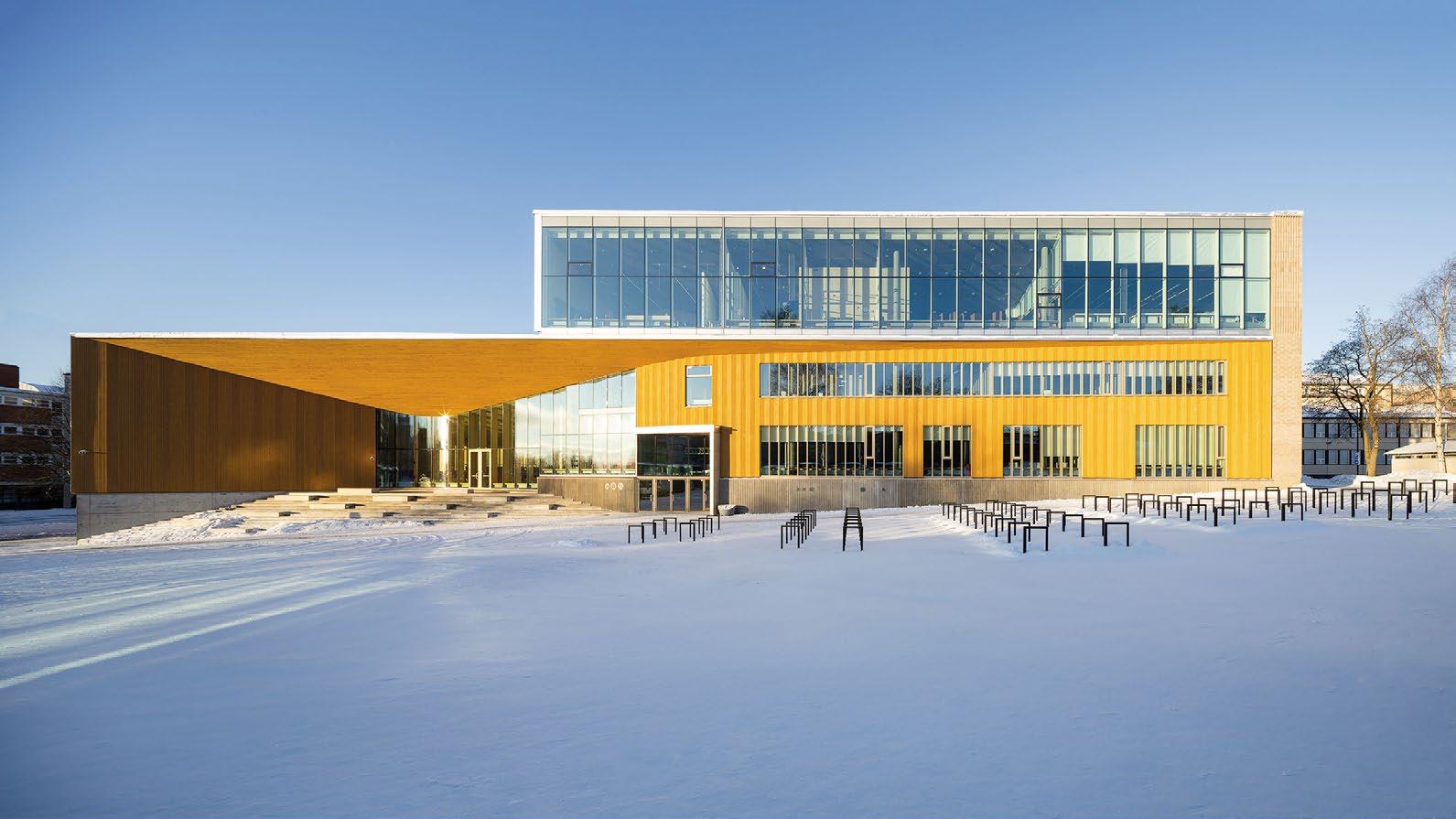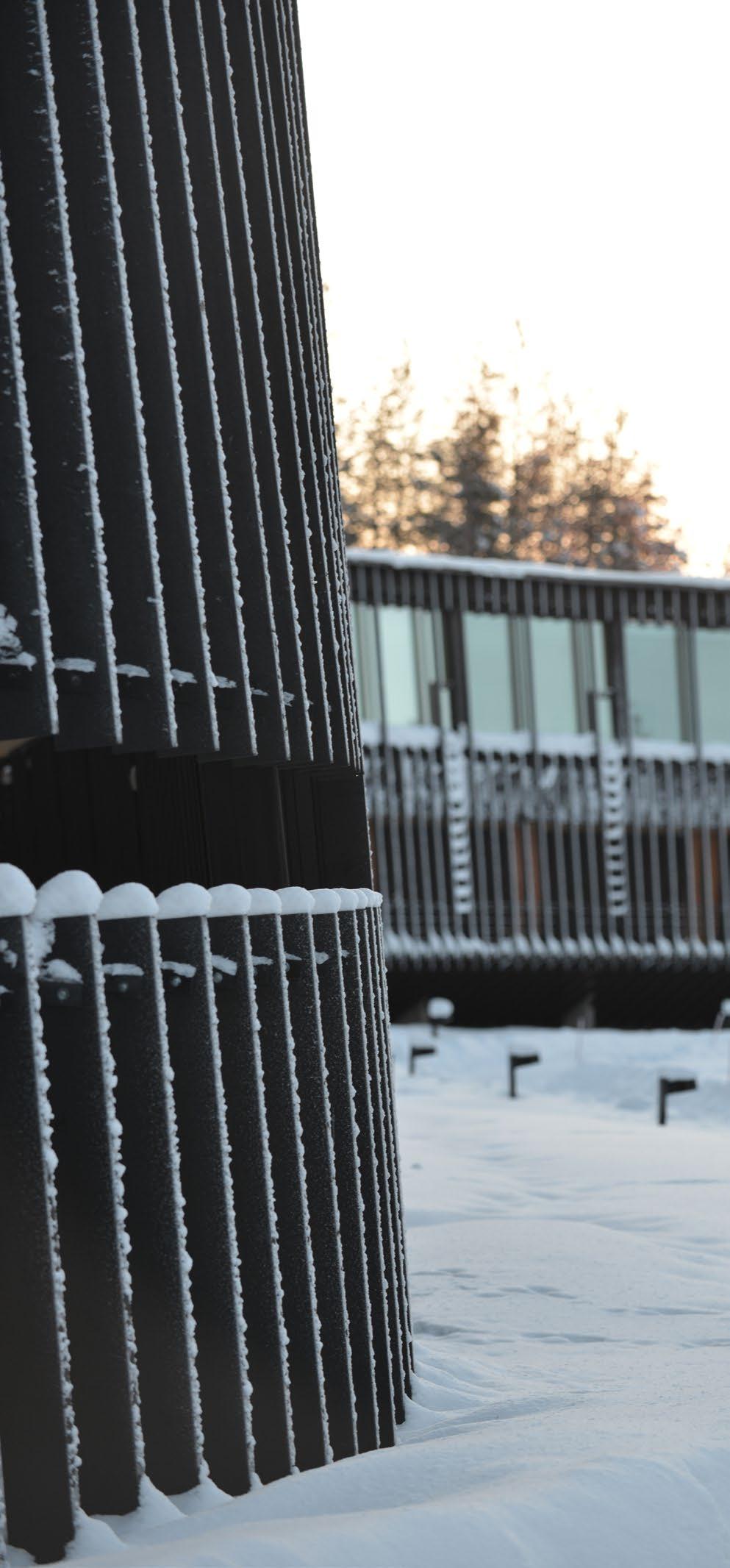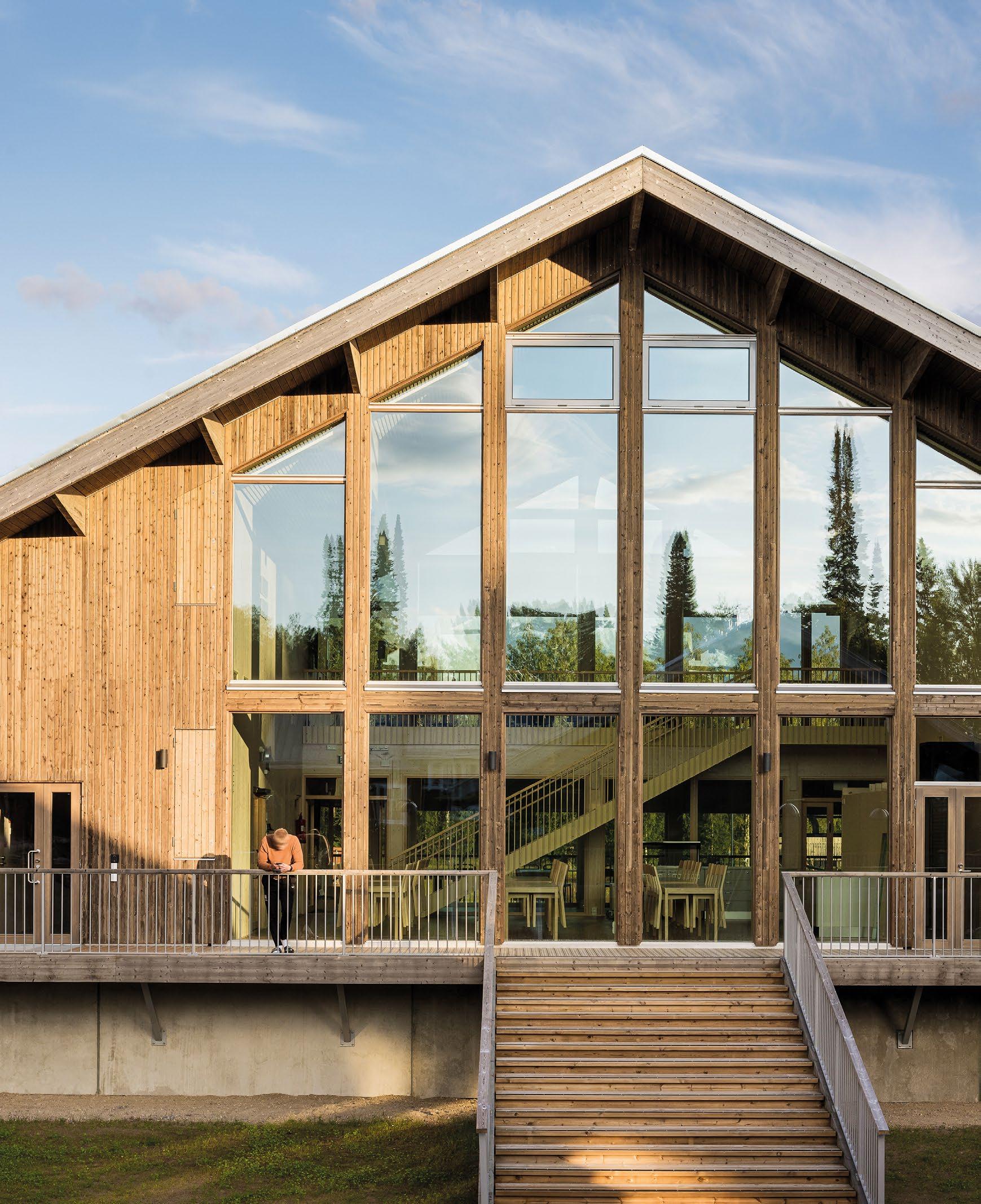 Erityispiirteenä on puun runsas käyttö sisä- ja ulkotiloissa sekä pohjoisen sää- ja valo-olosuhteiden huomioiminen.