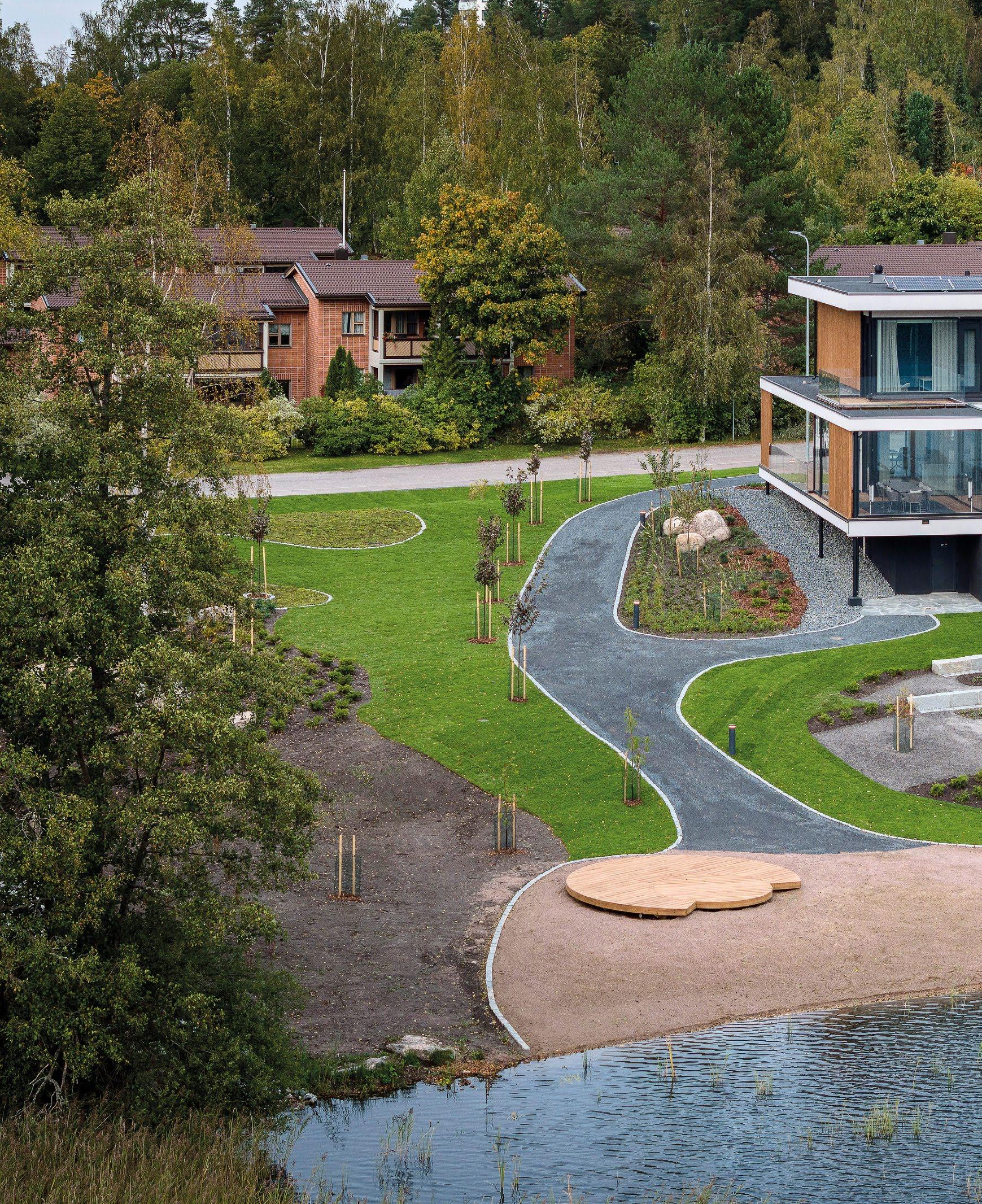 Postivarikossa kiteytyy monta toimistomme keskeistä suunnitteluperiaatetta: vähähiilisyys, asukaslähtöisyys ja saumattomasti suunnitelmaan integroituva maisema-arkkitehtuuri.