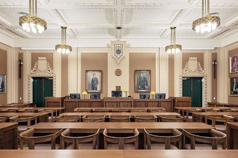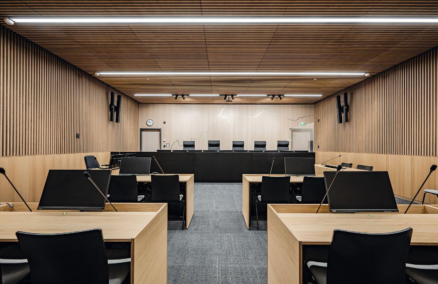 yhdistyvät laadukkaat ja kestävät luonnonmateriaalit sekä oikeustalon arvokkuutta korostava suunnittelu.