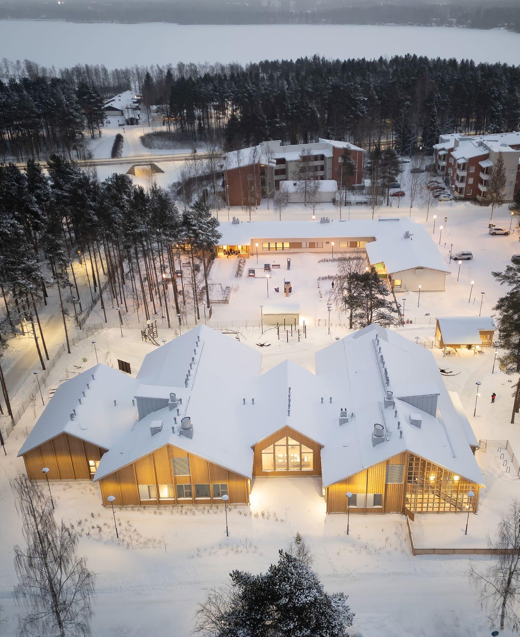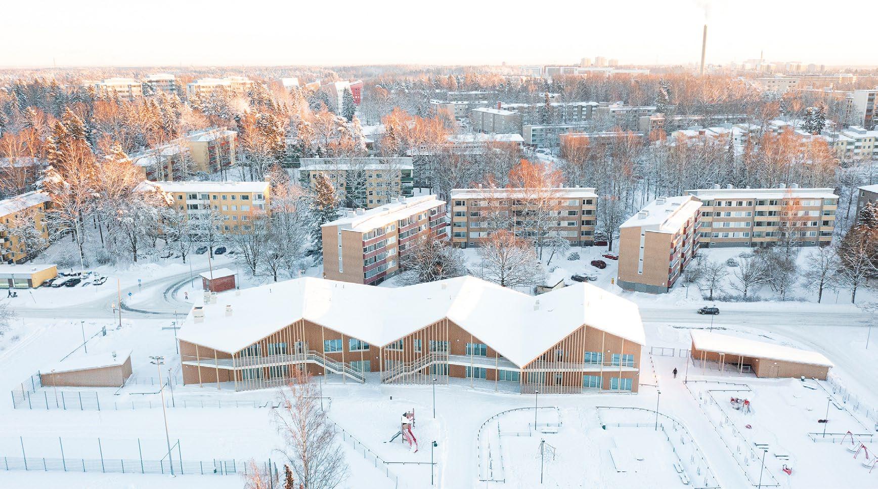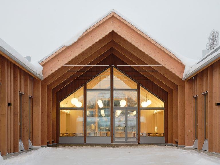 Pakilan Halkosuontien puukoulu, Arkkitehdit Rudanko+Kankkunen, AFKS Arkkitehdit. Koulu on rakennettu CLT-runkoisena. © Mikko Ala-Peijari