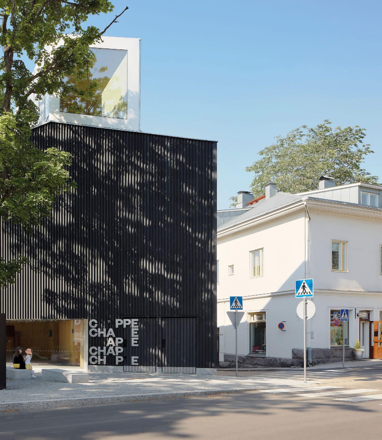 Taidemuseo Chappe, JKMM Arkkitehdit. Chappen mustat, kuusiverhoillut julkisivut leikittelevät suomalaisen puuarkkitehtuurin perinteellä. Julkisivujen yksityiskohdat korostavat käsityöosaamista ja sen roolia nykyaikaisessa arkkitehtuurissa.