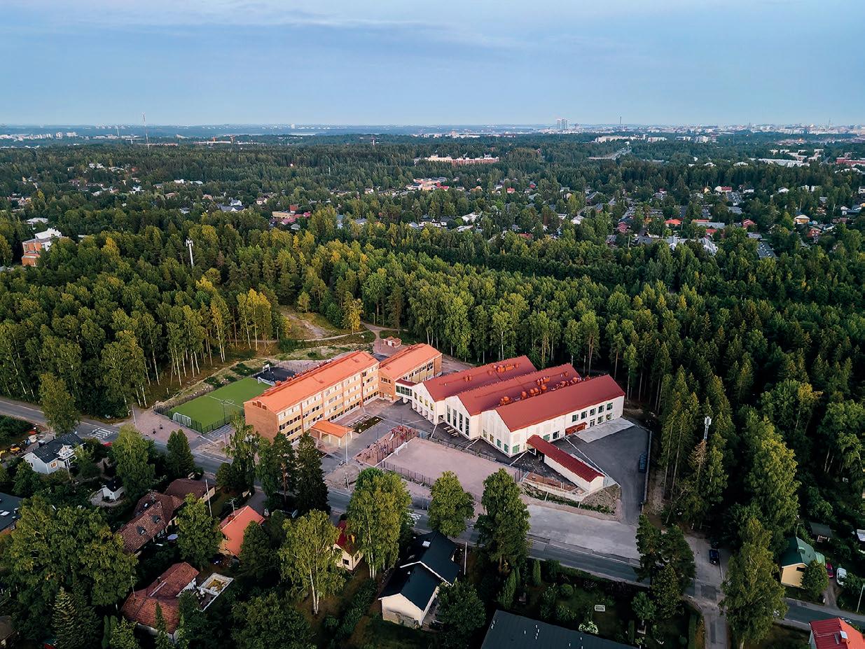 Pakila Halkosuontie Wooden School, Architects Rudanko+Kankkunen, AFKS Architects. The school is constructed with a CLT frame. © Mikko Ala-Peijari